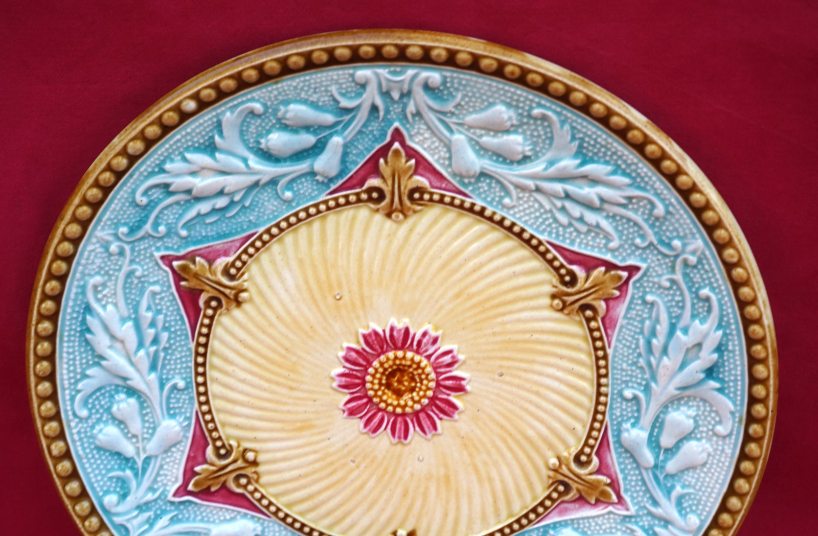 Majolica Plate Flower Acanthus Orchies Renaissance Late 19th C