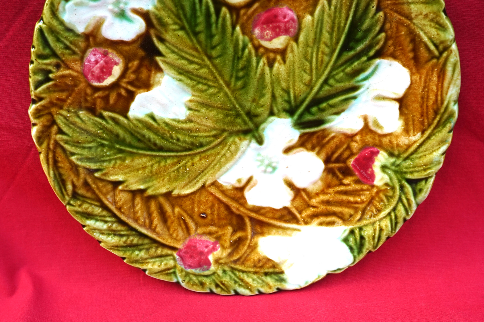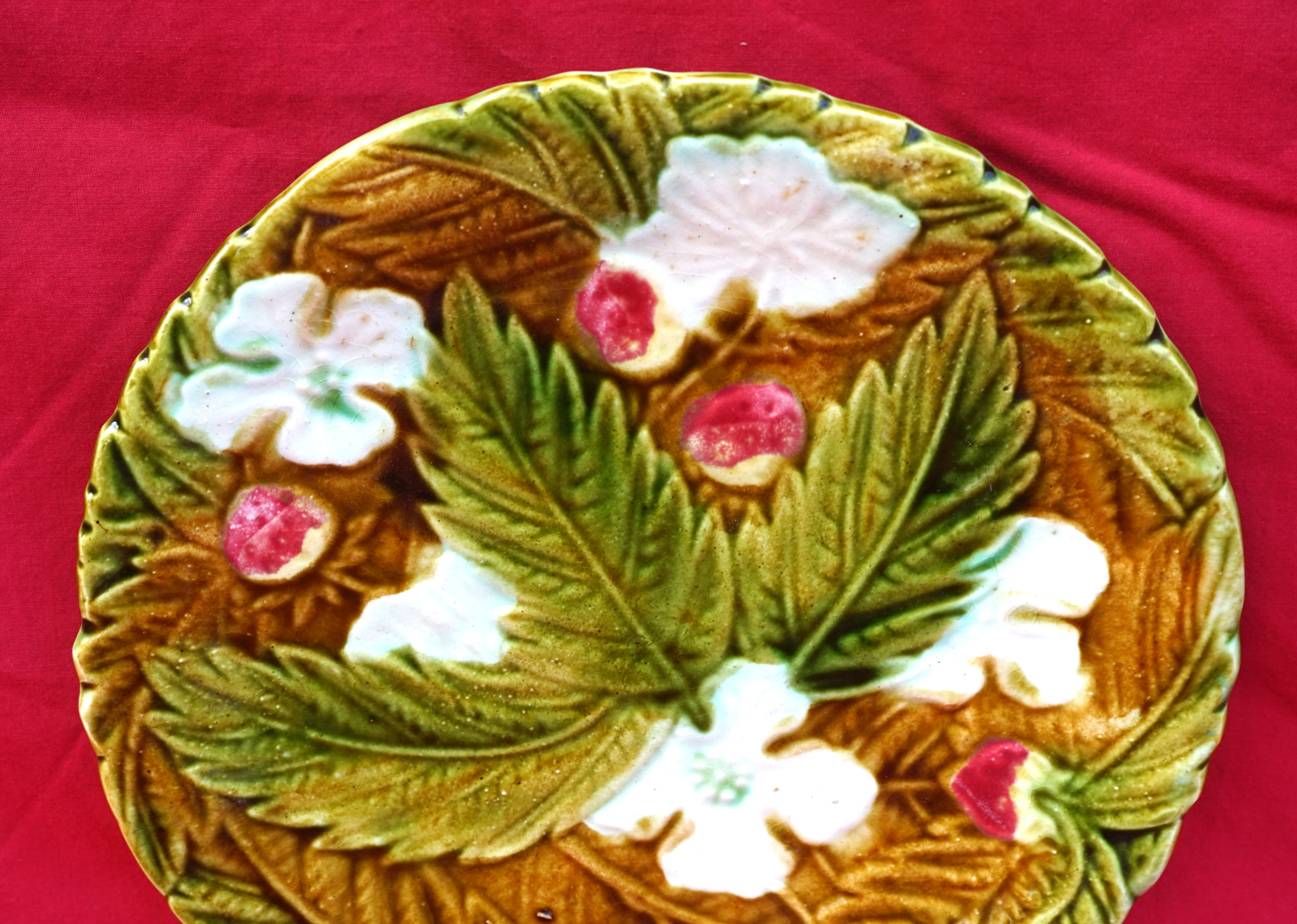 Majolica Strawberry Plate Onnaing Late 19th C