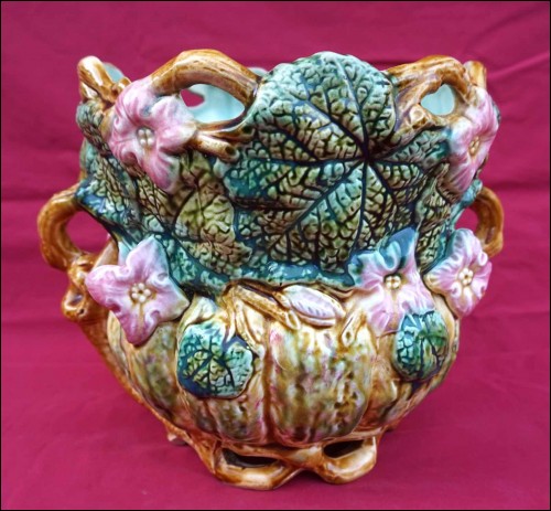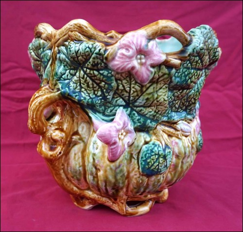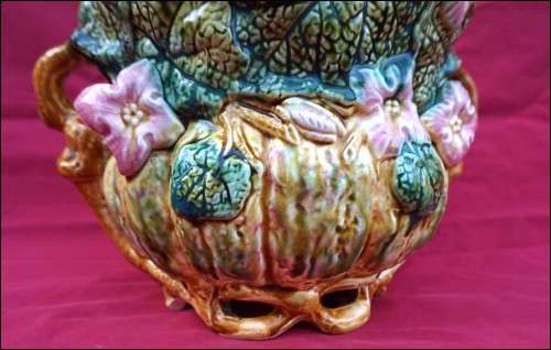 ONNAING Majolica PUMPKIN shaped Flower Pot Jardiniere Numbered 407 1880