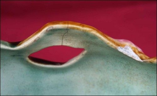 Cache pot 407 de la manufacture de Onnaing, modèle citrouille, vers 1879. Signé sur son fond, Bel état, une égrenure et un petit cheveu. Hauteur 22 cm, diamètre 21 cm.