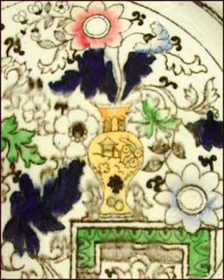 This plate in ironstone has been made by Hicks, Meigh & Johnson in the Stafford Potteries Higu Street, Shelton around 1822-35. 9" diameter. It's signed on the back with Royal Arms printed mark and Real Ironstone China pressed mark. Good condition just tiny chip on the edge like you can see on the last picture below.