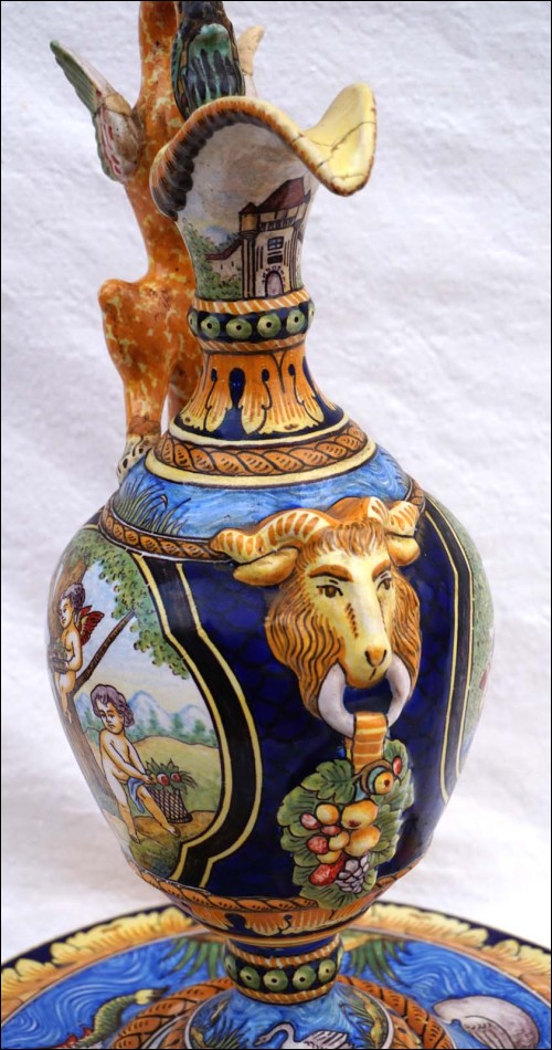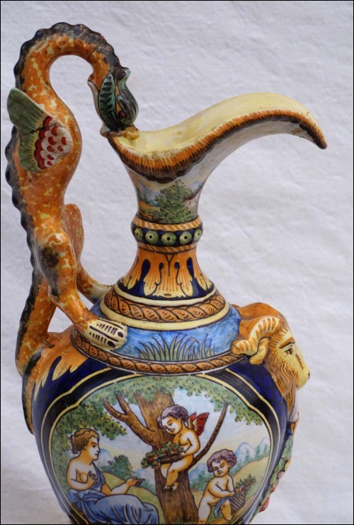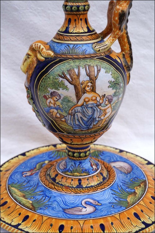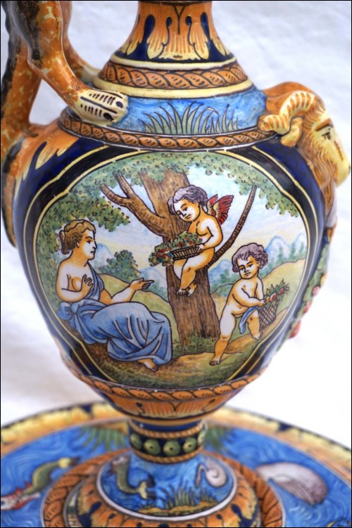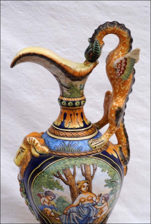 Revival Large Ewer Cherubs Faience Nevers Montagnon 1900