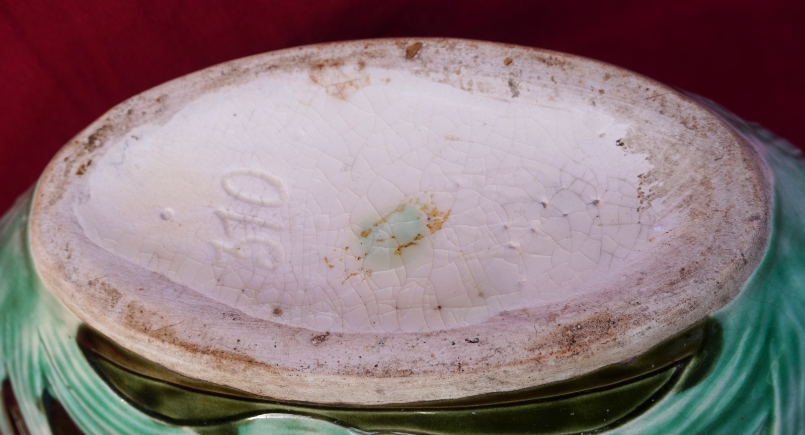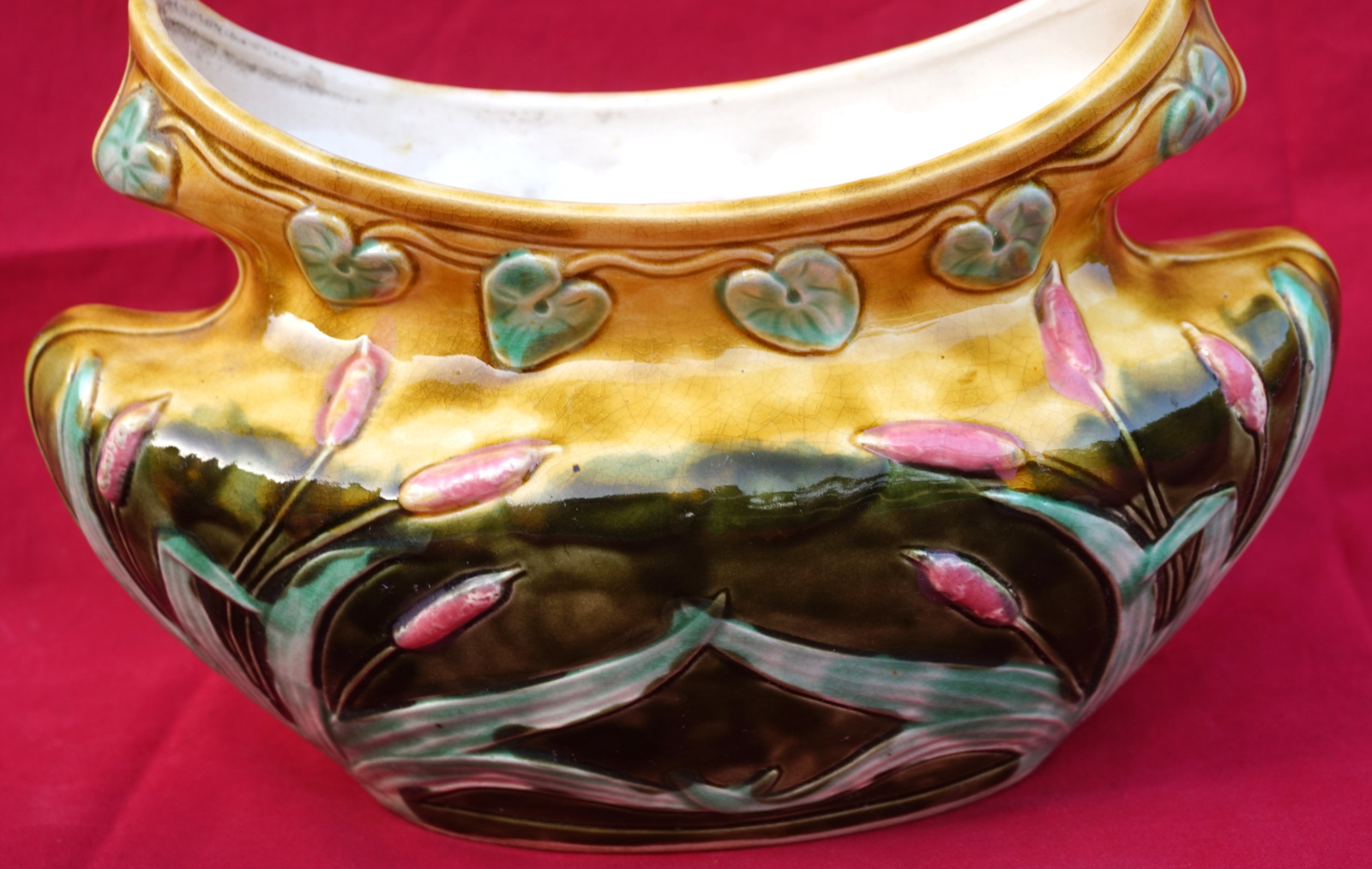 Sarreguemines Art Nouveau Reeds Decor Jardiniere Vase Majolica 1900's