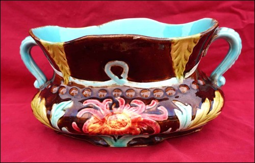 Sarreguemines Majolica Jardiniere Flower Pot Dahlia Early 20th C