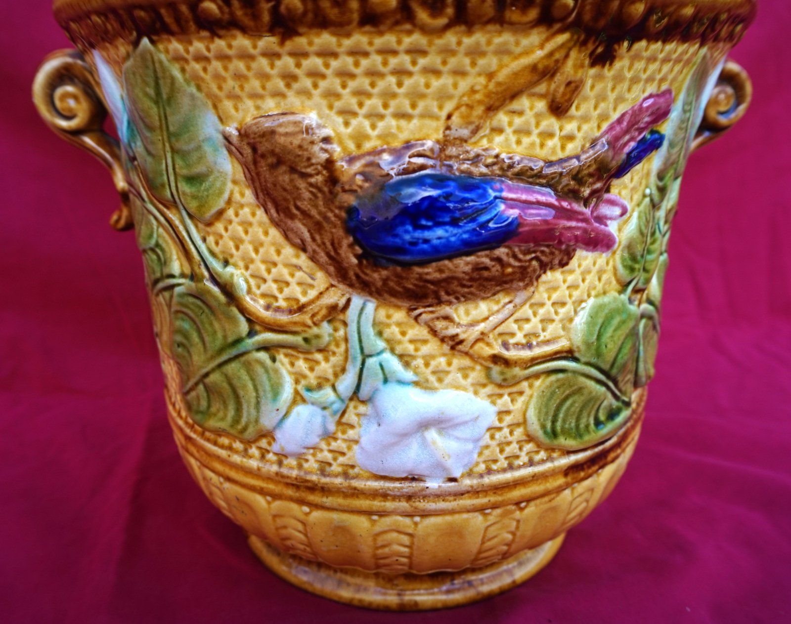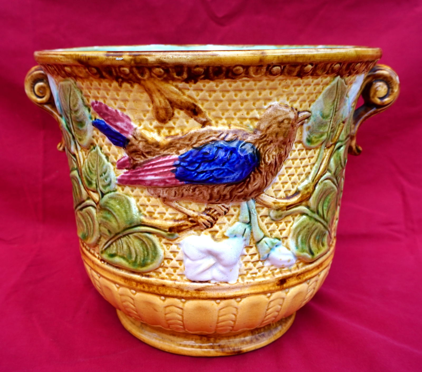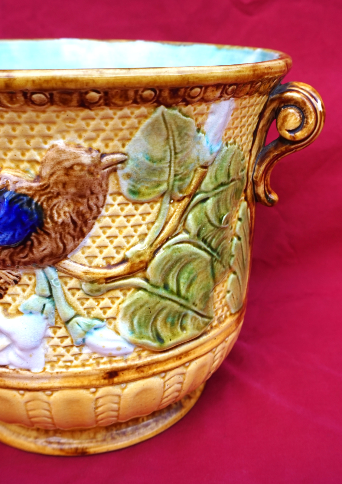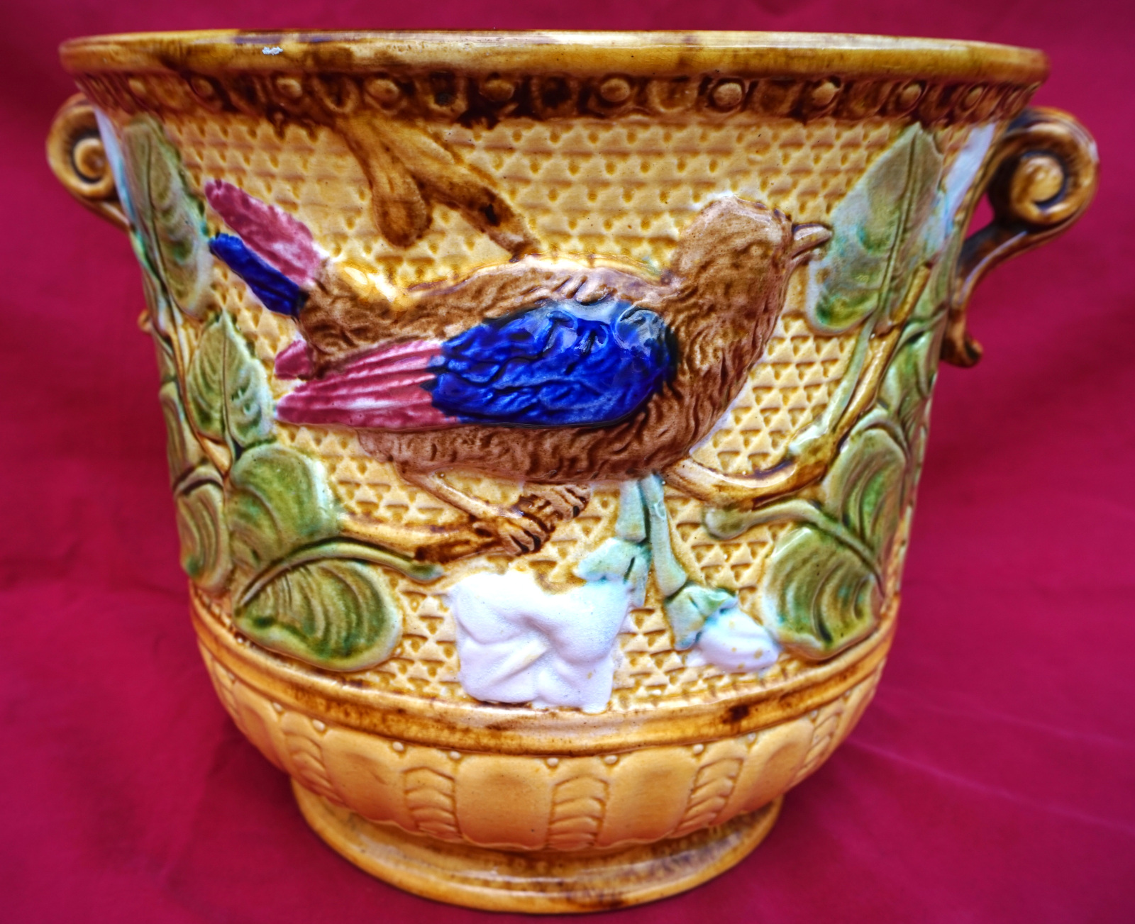 WASMUEL Belgium Majolica Bird Jardiniere Flowerpot 1900's