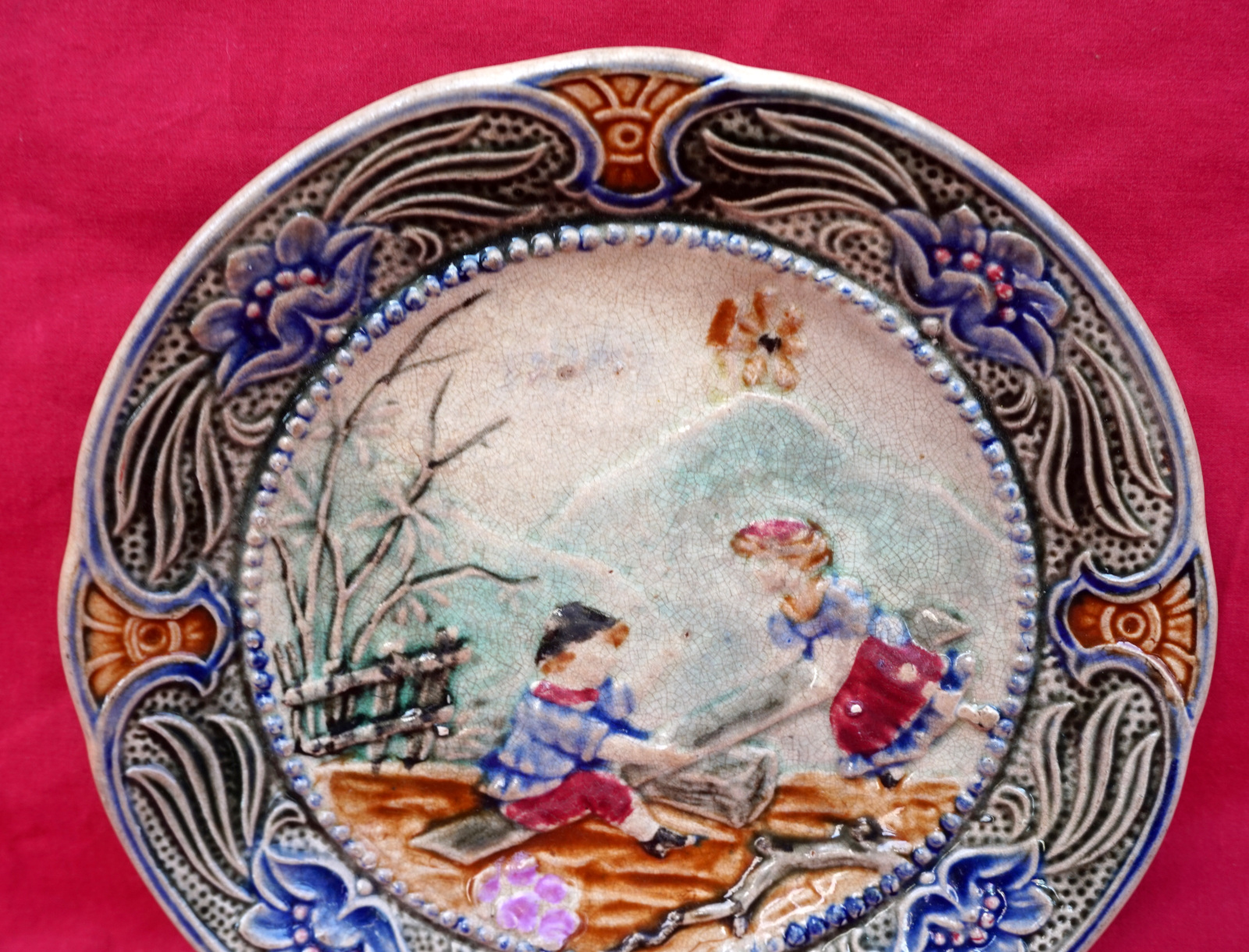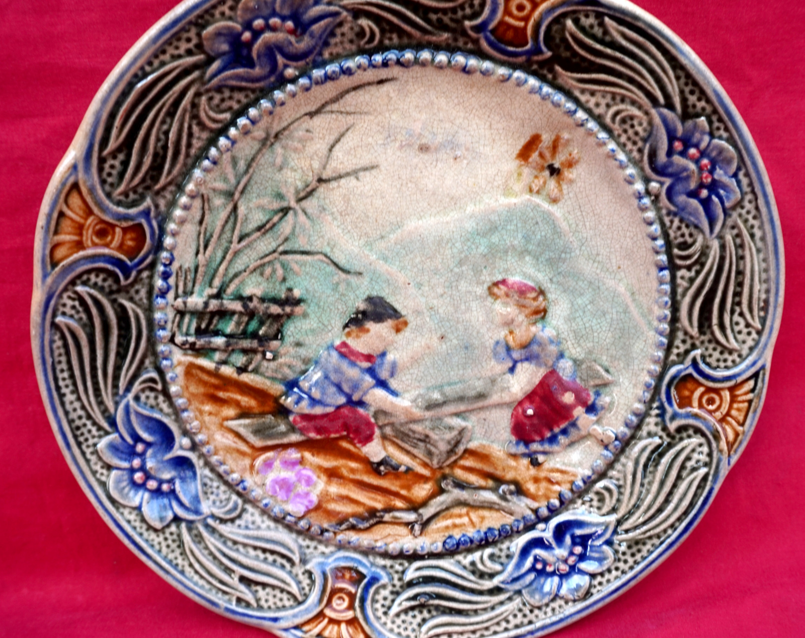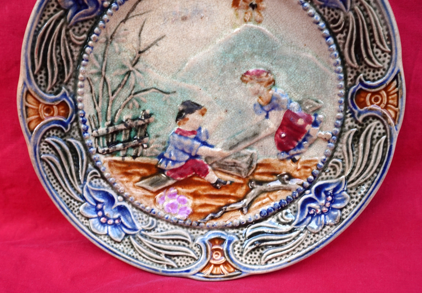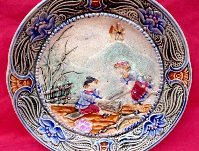 WASMUEL Belgium Majolica Children Swing Plate Late 19th C