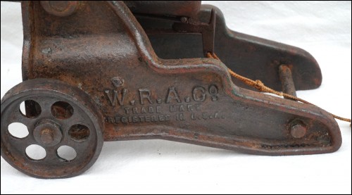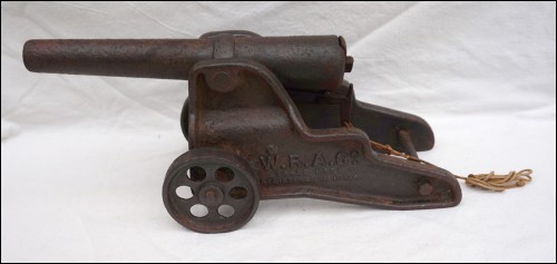 Antique Winchester signal cannon in cast iron made between 1908 - 1955. Cannon measures: 12" (30.5cm) barrel length, 1 1/4" (3.2cm) muzzle diameter, 16" (40.5cm) total length, 6 1/2" (16.5cm) width, 7" (17.7cm) height, weight 14lbs 2.35oz (6.417kilograms). The barrel is numbered with 4 digits on the back. Good condition as shown by the following pictures, if you would like more pictures please let me know.