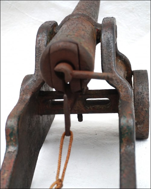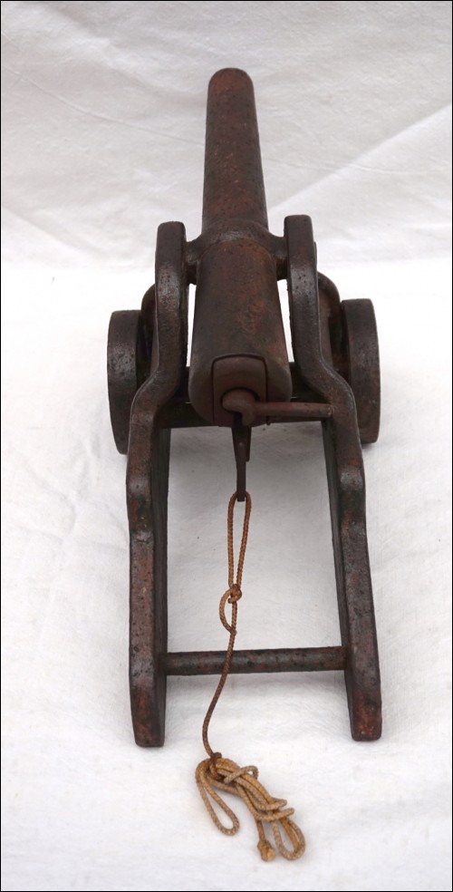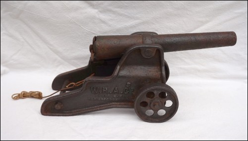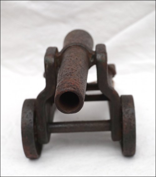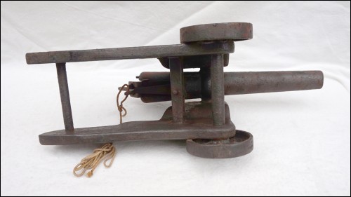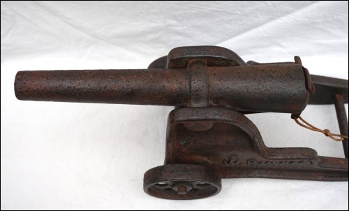 Authentique Canon de festivités, départ de courses, yatching... Winchester en fonte noircie, poudre noire, chargement par la culasse, entre 1908 et 1955. Il est numéroté au dos du fût. Longueur du fut 30.55 cm, longueur totale 40.5 cm, largeur 16.5 cm, hauteur 17.7 cm, diamètre de la gueule du canon 3.2 cm, poids 6.417 kg. Bel état.