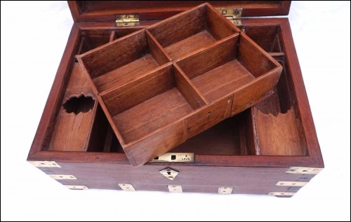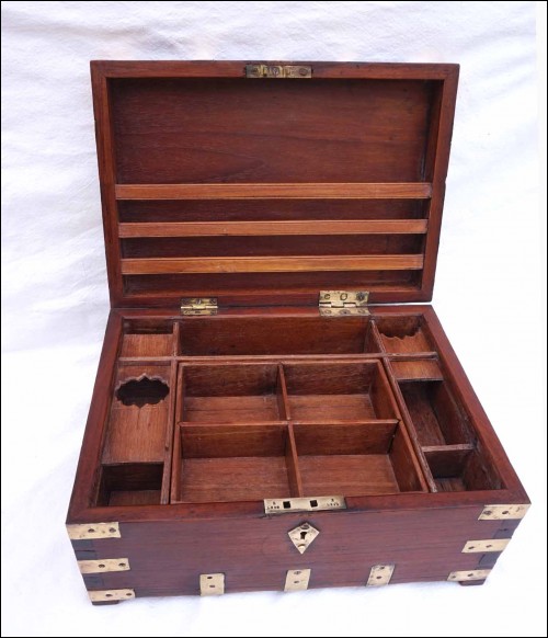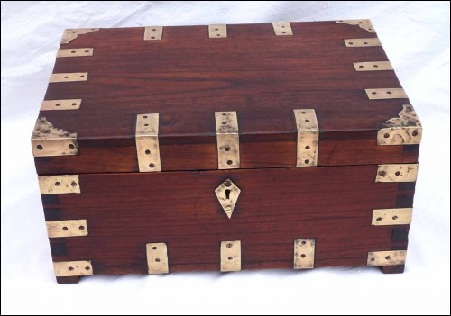 Colonial Letter Money Teakwood Brass Box Officer's Navy British Raj