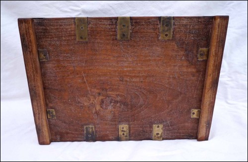 Colonial letter money teakwood with brass ornaments made during British Raj. The interior is divided into compartments with secret compartment below. 14" (35.5cm) width, 9 7/8" (25cm) depth, 7" (17.8cm) height, weight 9lb 9.40oz (4.349 kilograms). Beautiful condition, the key is not original, as shown by the following pictures.