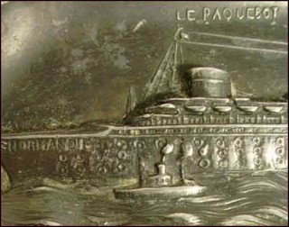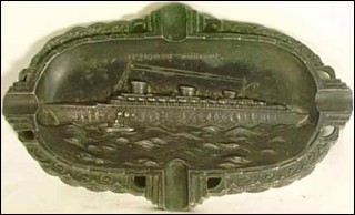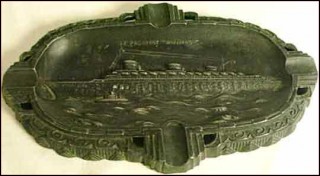 French Ship SS Normandie Ocean Liner Ashtray Tin Art Deco 30's