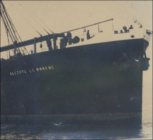 Portrait de bateau, cargo type commission, Le Alberte Le Borgne, en mer entre Oran et Marseille estampe du cargo français. Le fond est décadré. Bon état, voir photographies. Dimensions du cadre 49 cm x 38,5 cm, de la vue 22,5 cm x 29,5 cm.