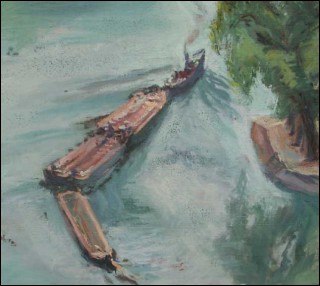 From the 1st class of the SS Liberte transatlantic Ocean liner "Notre Dame de Paris" large oil on canvas by André Hebuterne in 1948. Perfect condition in gilt wooden frame with label of auctions on the back. This painting comes from the auction who takes place in Le Havre, the August 1 1962.