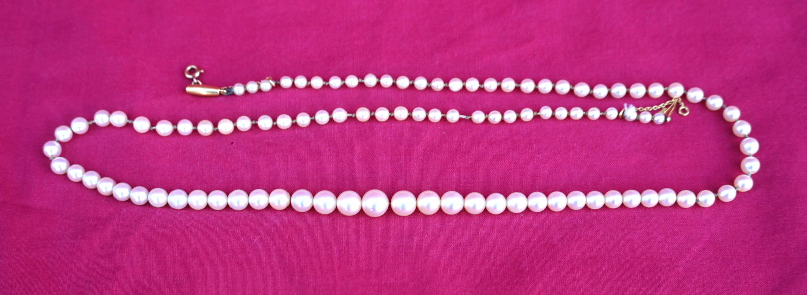 Cultured Pearl Graduated Necklace 18Kt Gold Clasp 20 7/8" Early 20th C