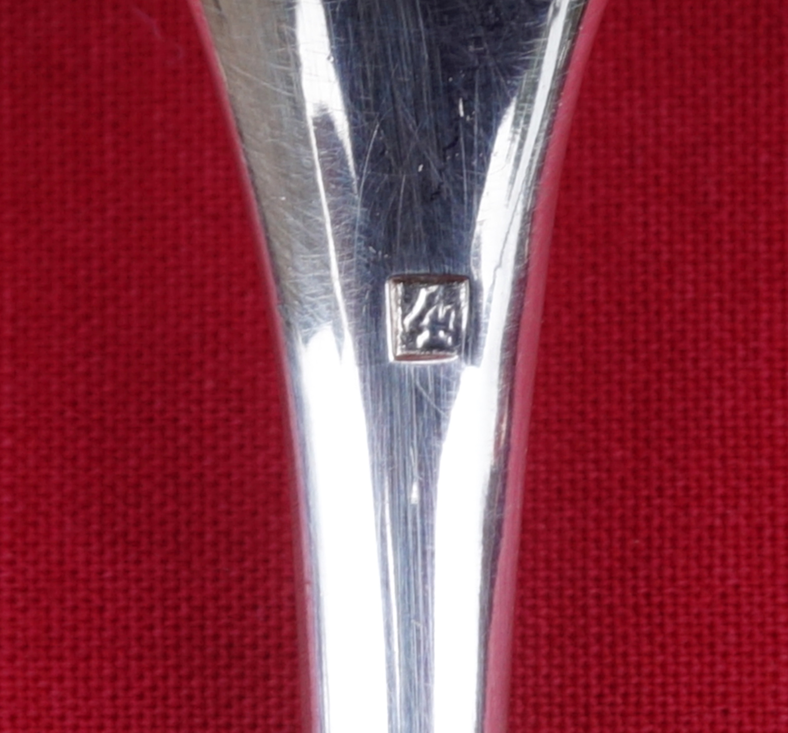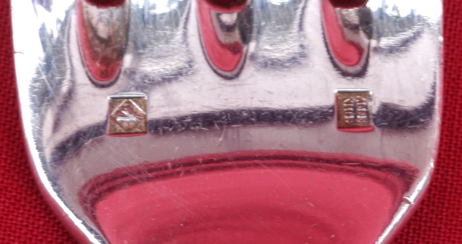 ALFENIDE Pair Spoon Fork Medallion Mono SC Nickel Silver 1920's