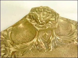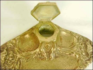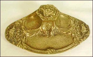 Encrier aux anémones du sculpteur orfèvre bijoutier René Gardille de l'école de Nancy vers 1925.Il est en bronze massif. Bon état quelques taches dans le vernis , signé dans le décor, il a perdu son encrier en verre. 15,5 cm long 9,5 cm large 3 cm haut.