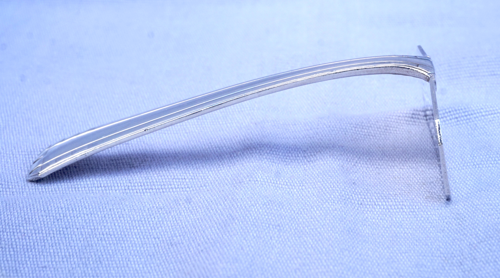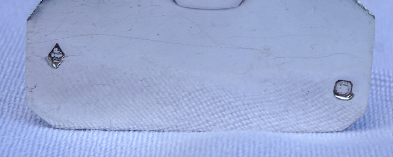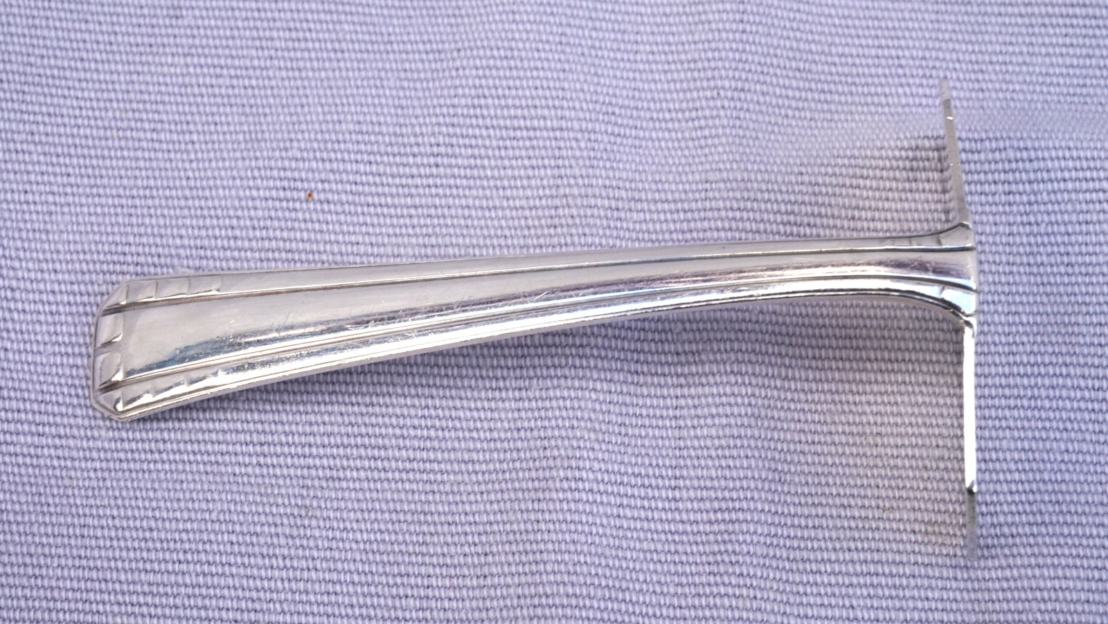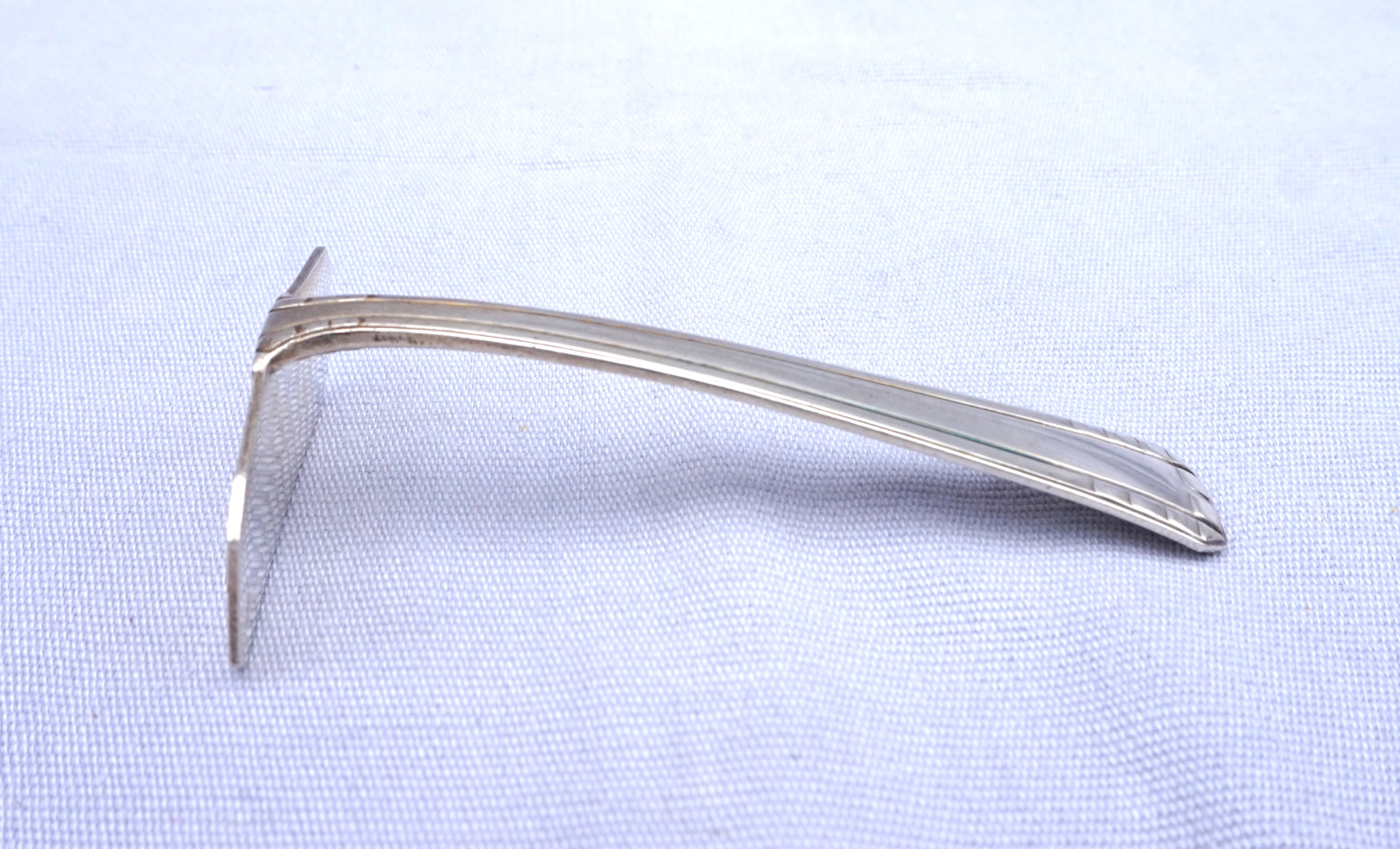 Poussoir en argent massif pour bébé Paris vers 1930. Poinçons Minervet et maïtre orfèvre. Longueur 9 cm, largeur 4.6 cm, poiuds 26.40 gr. Très bel état.