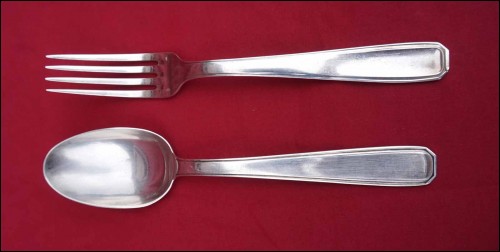 French Art Deco sterling silver dinner fork and spoon set made by Charles Boulenger in Paris during the 1925's. 8 1/4" (21cm) length, weight 6 oz (170 grams). as shown by the following pictures.