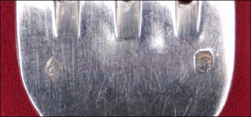 Une fourchette et cuillère en argent massif 1er titre, poinçon Minerve, Charles Boulenger orfèvre, époque Art Déco vers 1925 Poids 171 gr Longueur 21 cm.