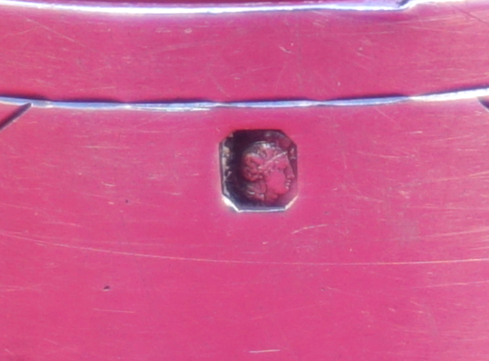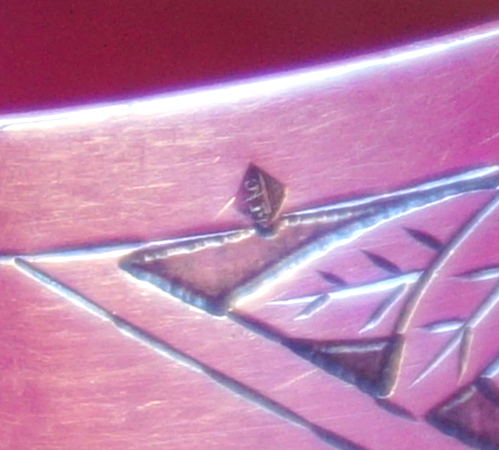 Rond de serviette en argent massif à décor Art Deco portant le prénom ANNE, vers 1930. Il est poinçonné de la tête de Minerve et du poinçon de maître orfèvre. Diamètre 5 cm, largeur 3.5 cm, poids 33.94 gr. Très bel état.