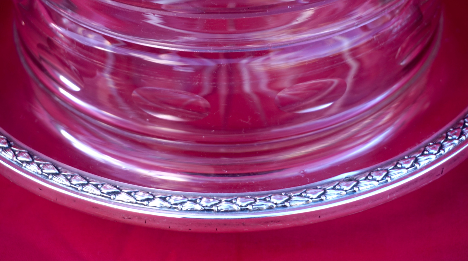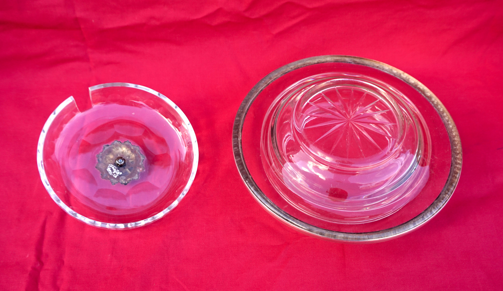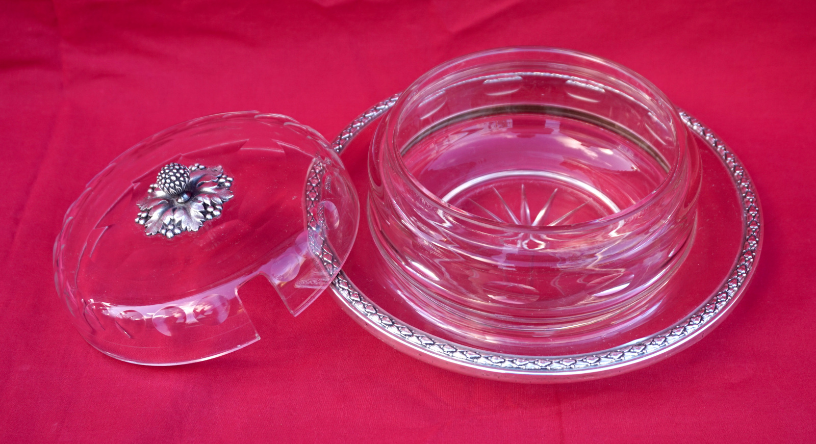 BACCARAT V SAGLIER Sterling Silver Cut Crystal Lidded Jam Jelly Preserve Serving Dish