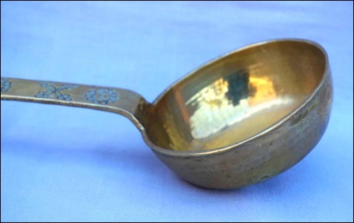 Brittany Cookware Engraved Hammered Brass Pancake Crepes Ladle Late 19th C