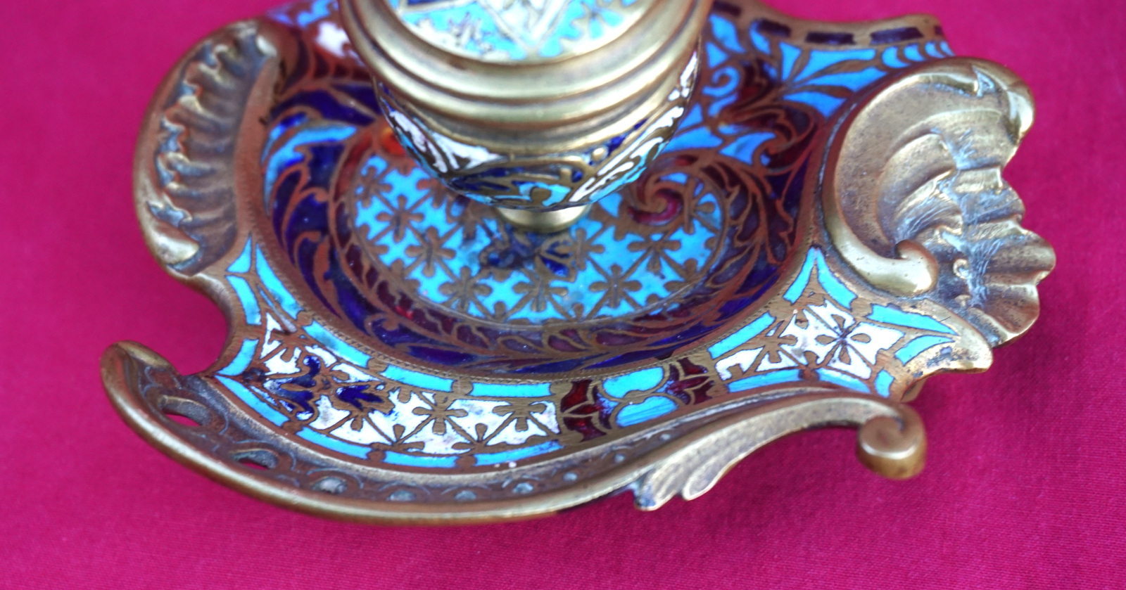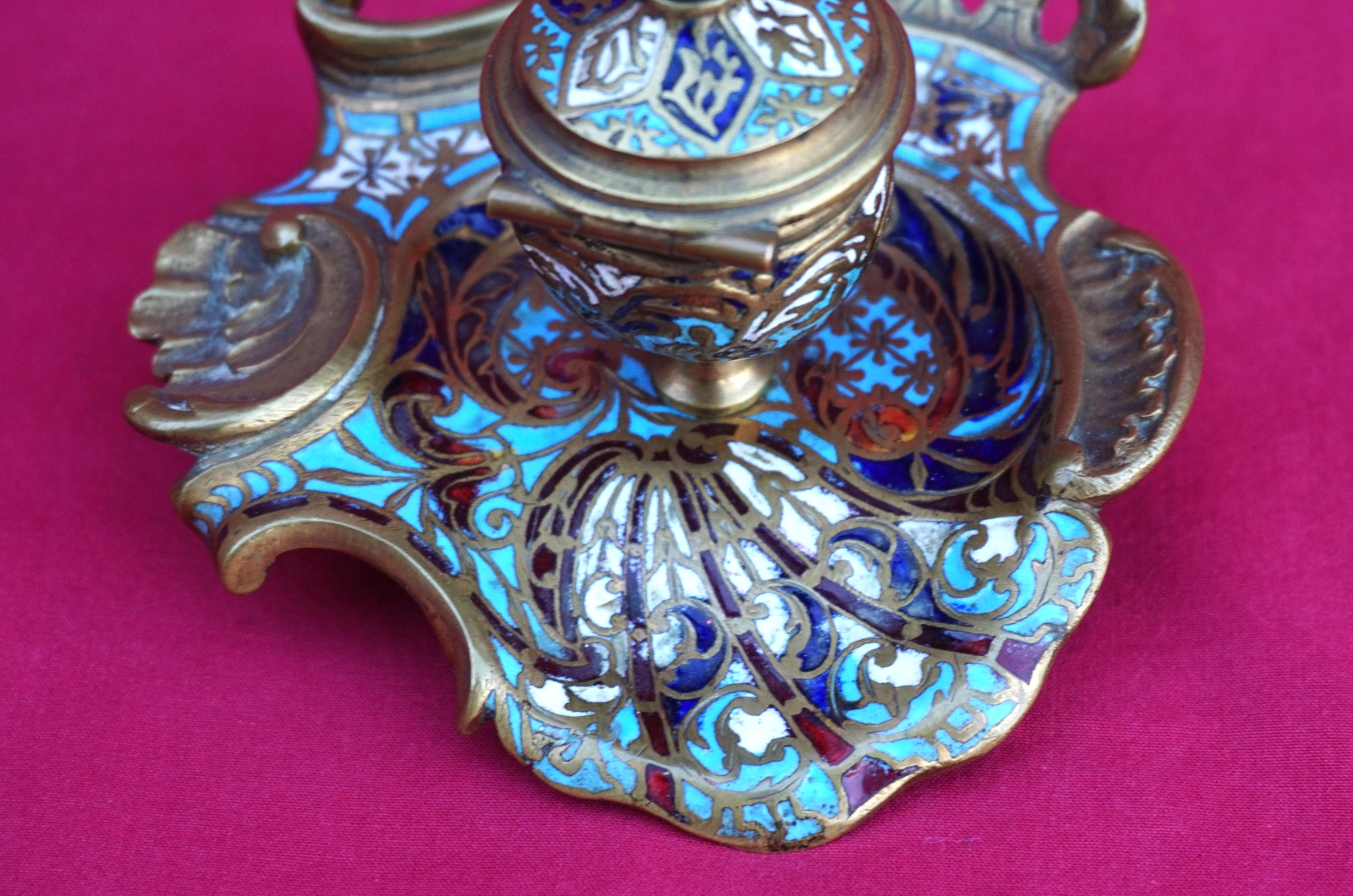 Champleve Enamel Scalloped Inkwell Gilt Brass 19th C