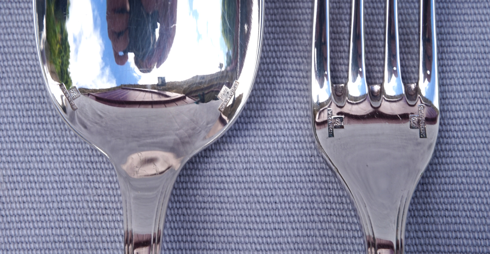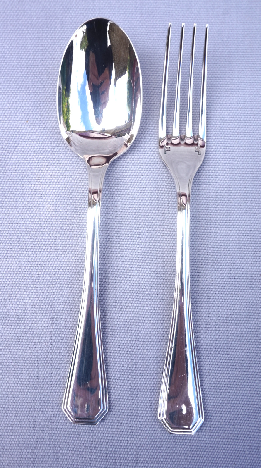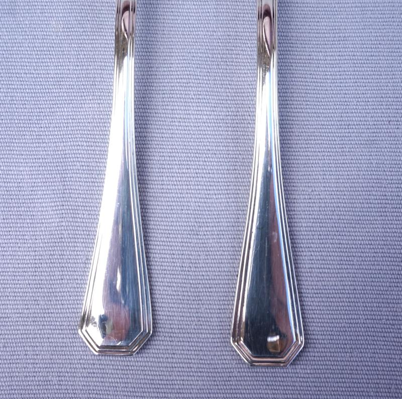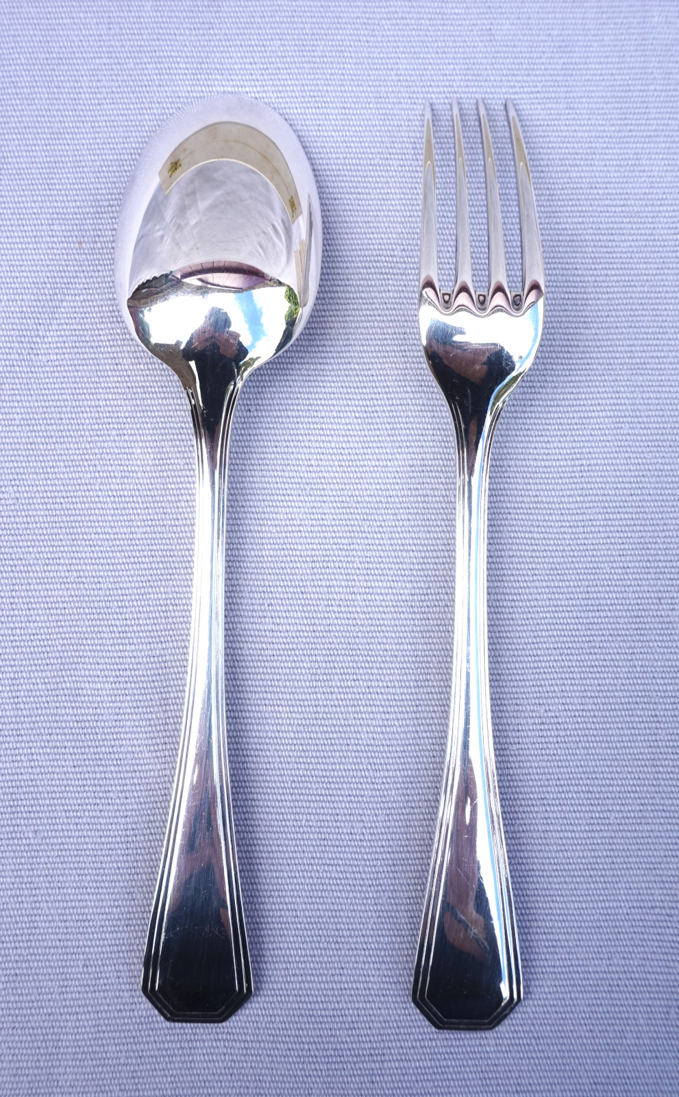 French silver plated youth chidren flatware set America model made by Christofle. All the pieces are hallmarked. 6 3/4" (17.2cm) length for the fork and the spoon. Beautiful condition, the box has a few small rust stains.