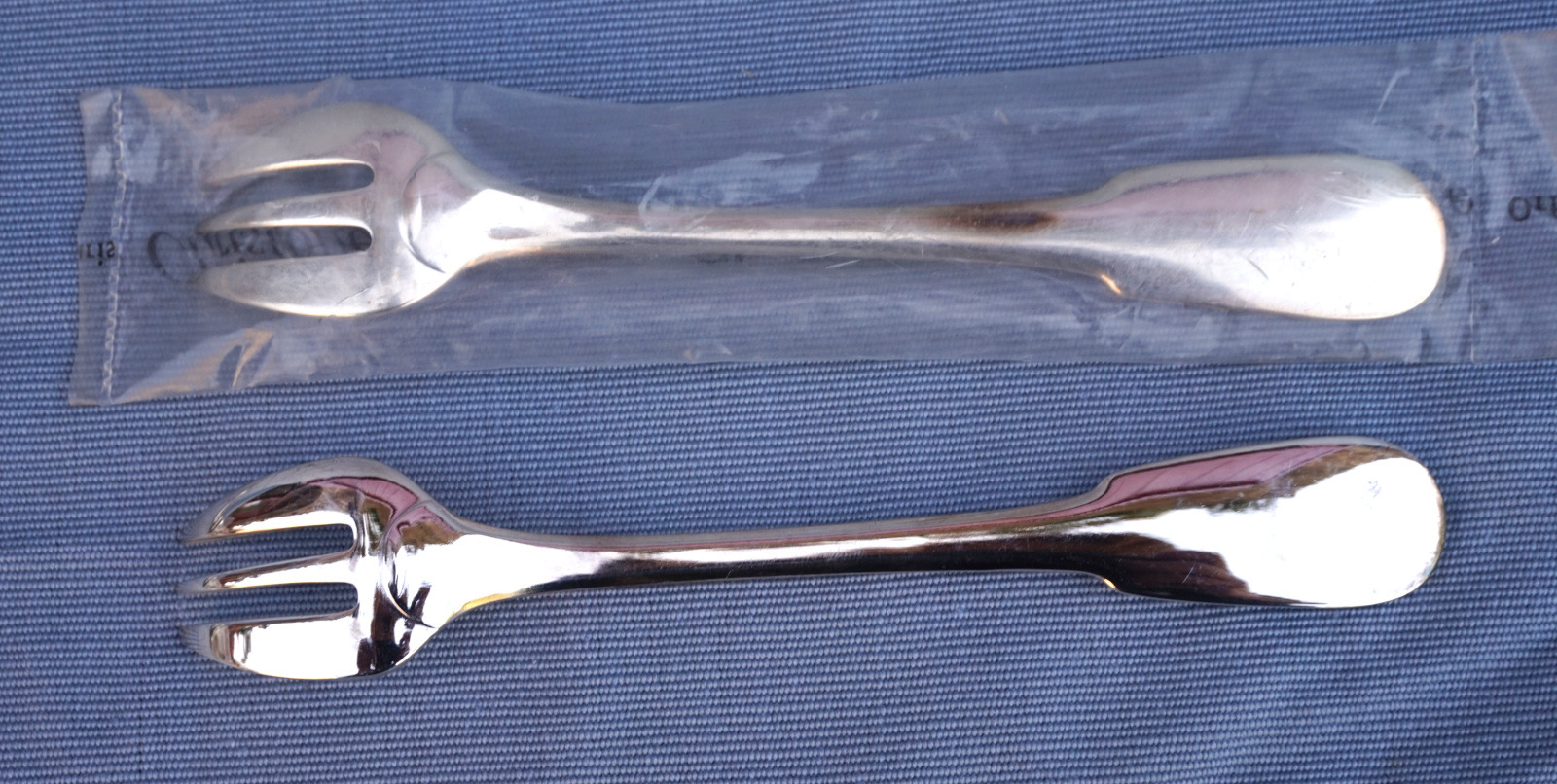French silverplate Cluny model 2 oyster forks Christofle France. They are hallmarked. 5 3/§4" (14.6cm) length. Mint condition , one new in the sealed package.