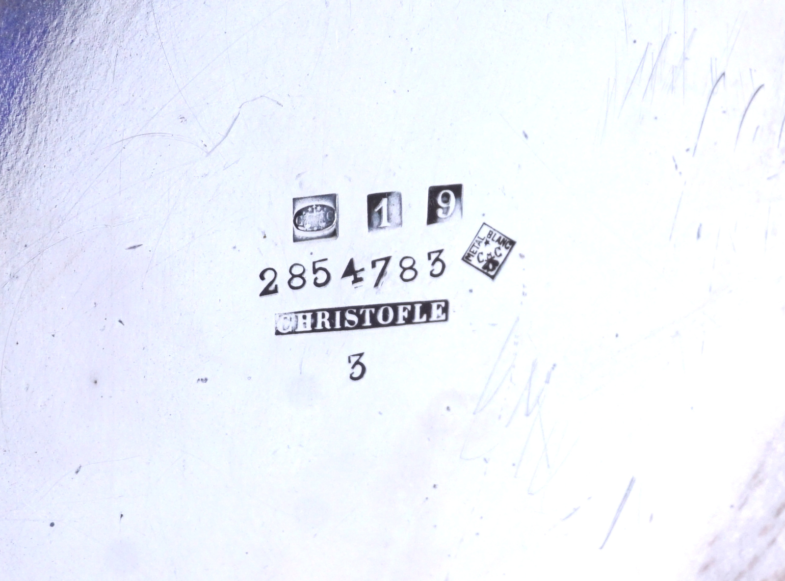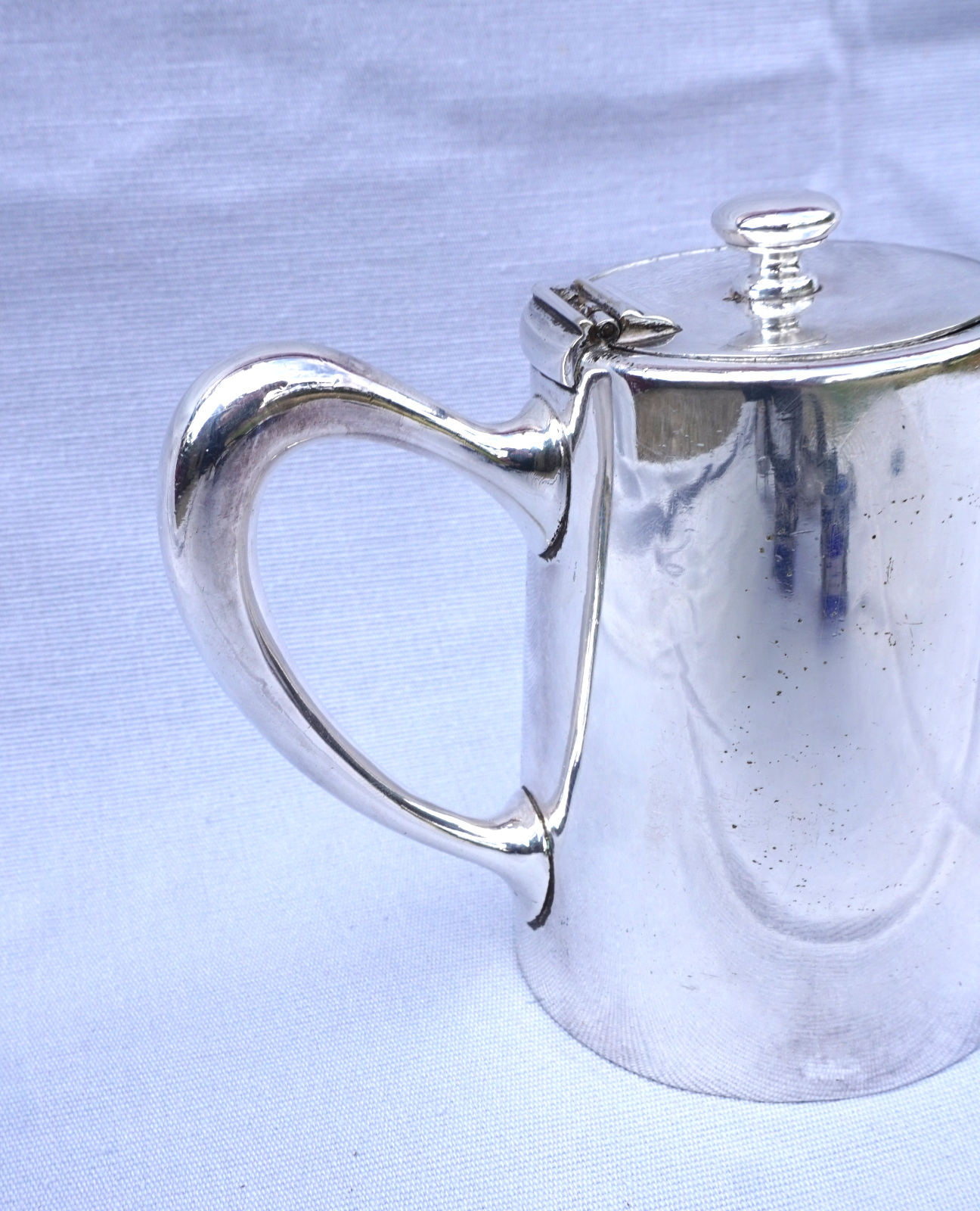 French silver plate individual teapot hot waterer pot or creamer made by Christofle, hotelware, early 20th century. It's hallmarked and numbered on the back. 4 3/4" (12cm) height, 6 3/4" (17cm) width, capacity 1.5 cup (0.35 liter). Perfect condition.