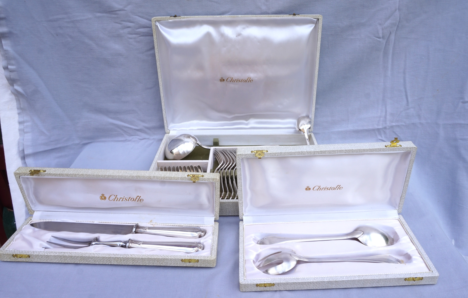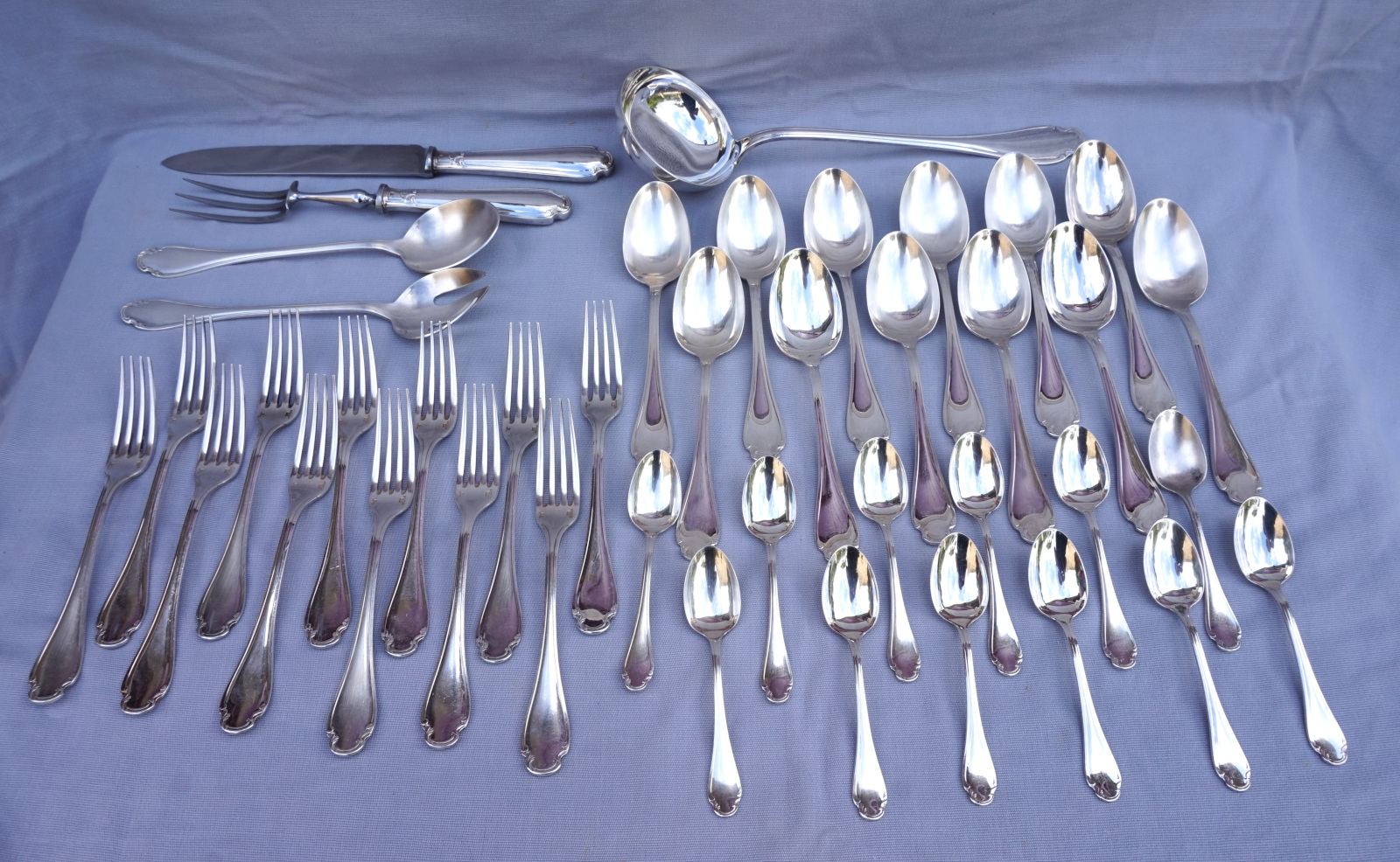 CHRISTOFLE Pompadour 41 Piece Set Silverplate Flatware