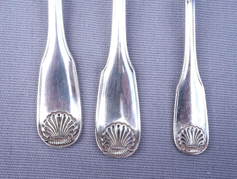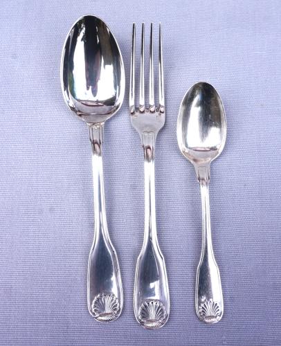French silver plated youth chidren flatware set Vendome Arcantia model made by Christofle. All the pieces are hallmarked. 6 3/4" (17.2cm) length for the fork and the spoon and 5 1/4" (13.5cm) for the dessert spoon. Beautiful condition, only the dessert spoon has been used and the box has a few small rust stains.