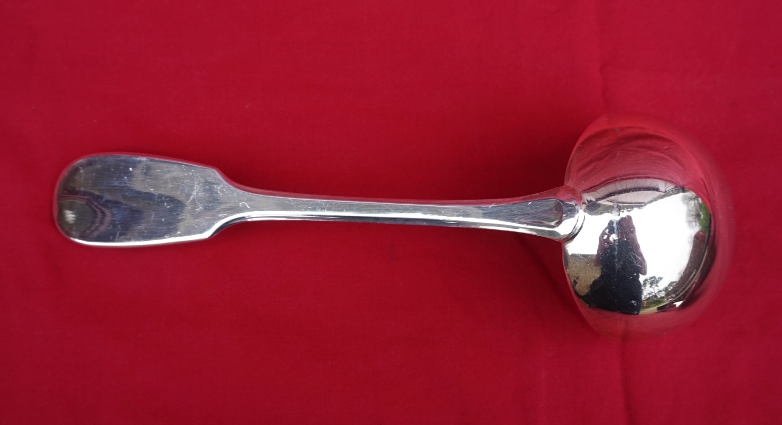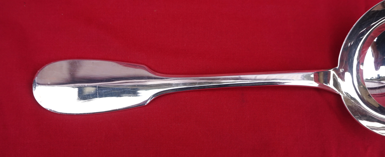 For our French-speaking friends Petite louche en métal argenté de forme Uniplat ou Cluny vers 1950. Longueur 21 cm.Très bel état, très peu utilisé.