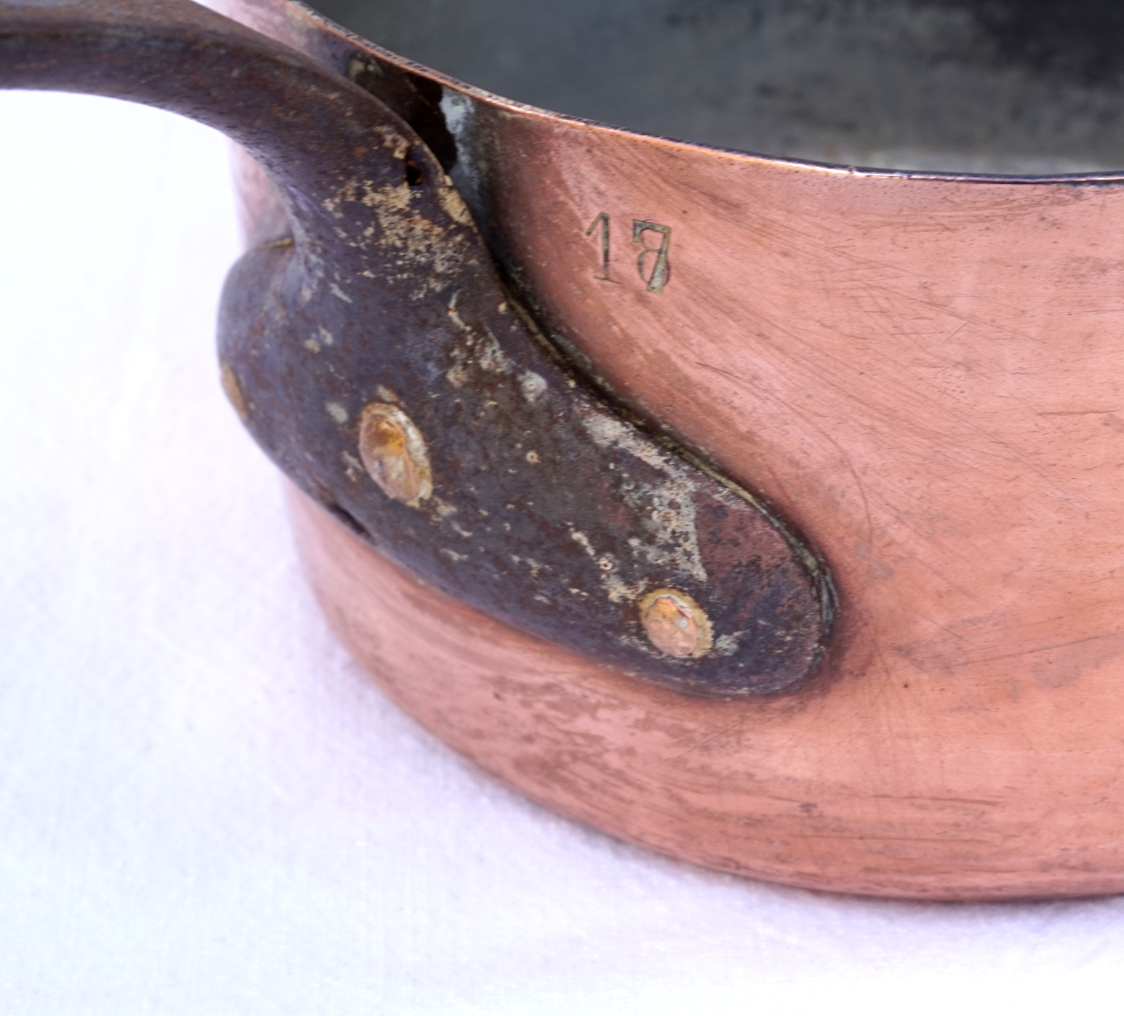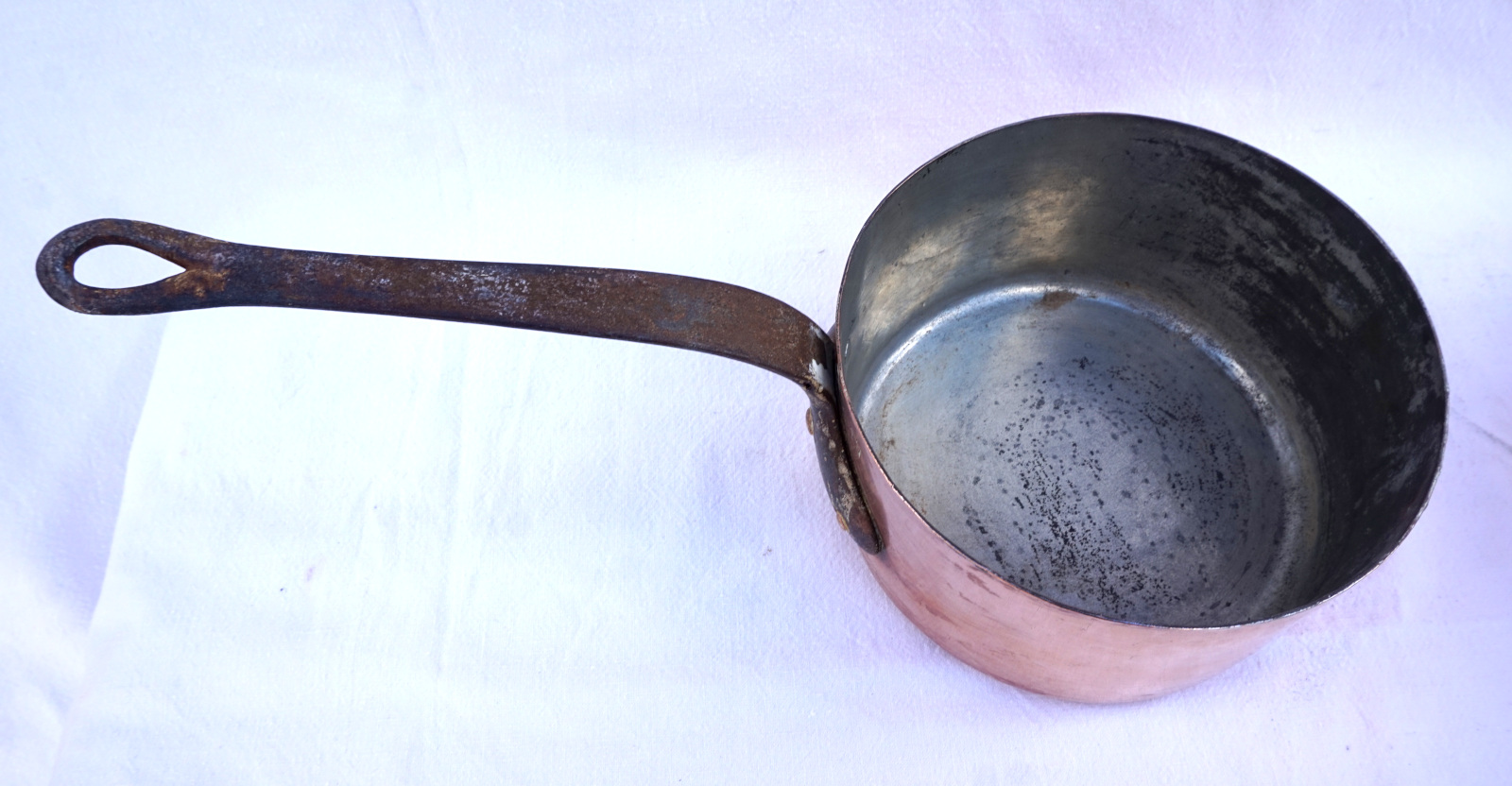 Cook Tinned Copper Saucepan Ø 6 3/4" Iron Handle Rivet 1900's