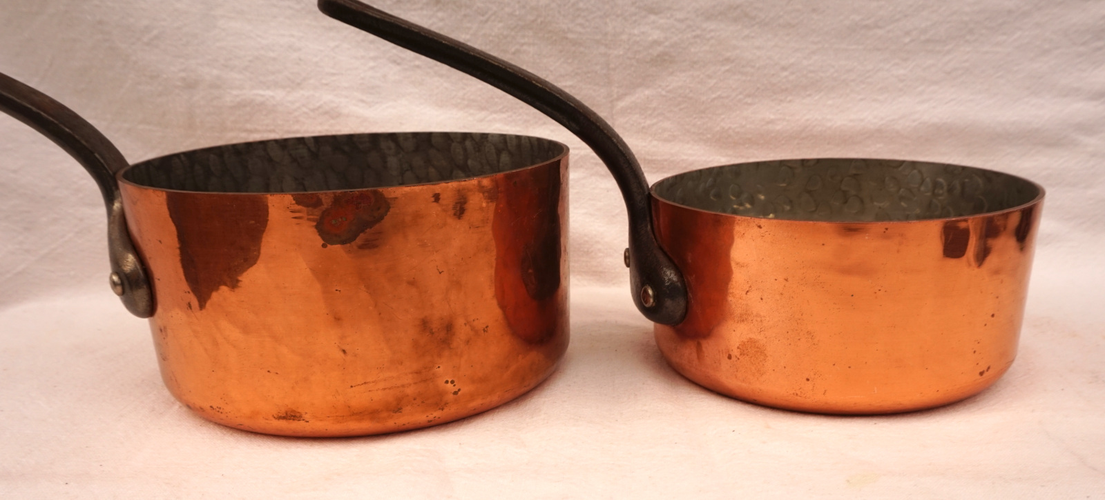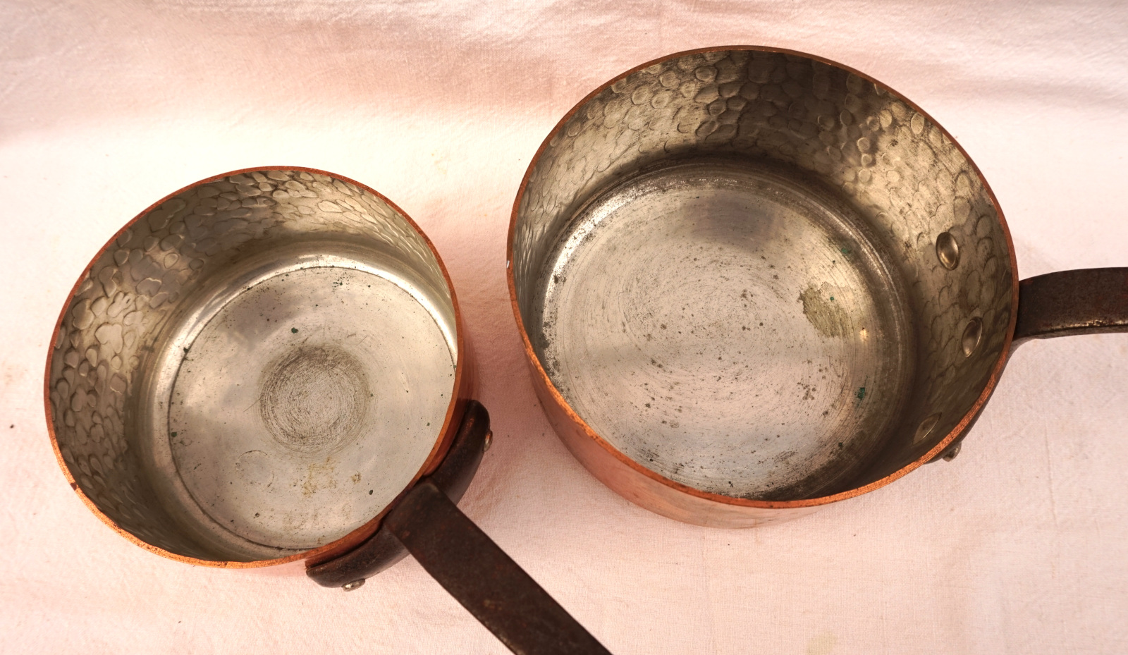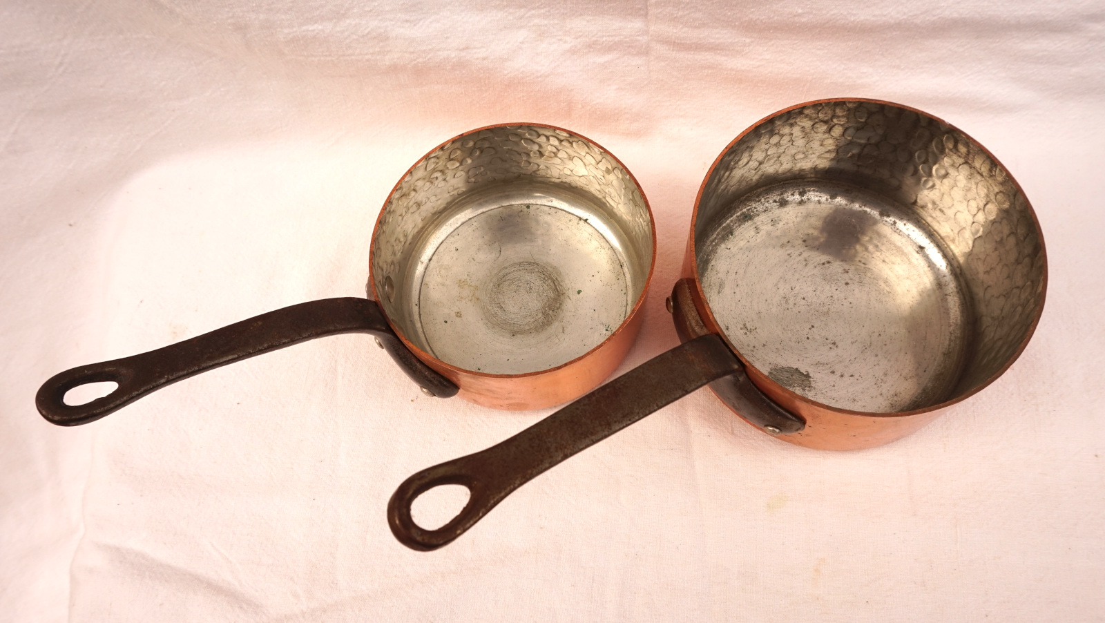 Cookware Hammered Tined Copper Pair of Sauce Pan Iron Handle