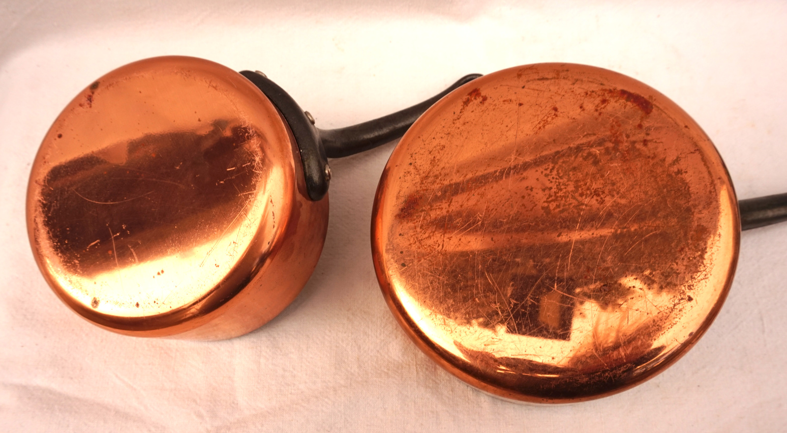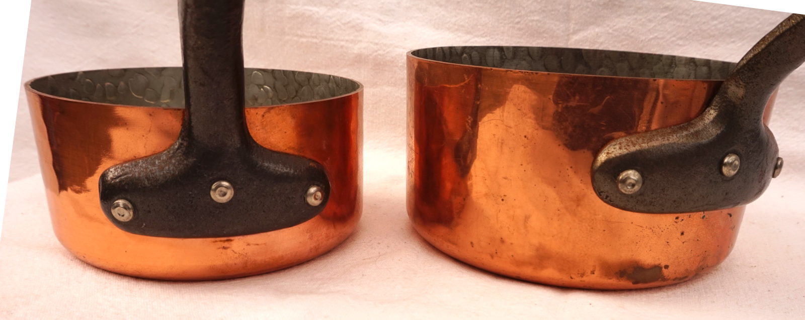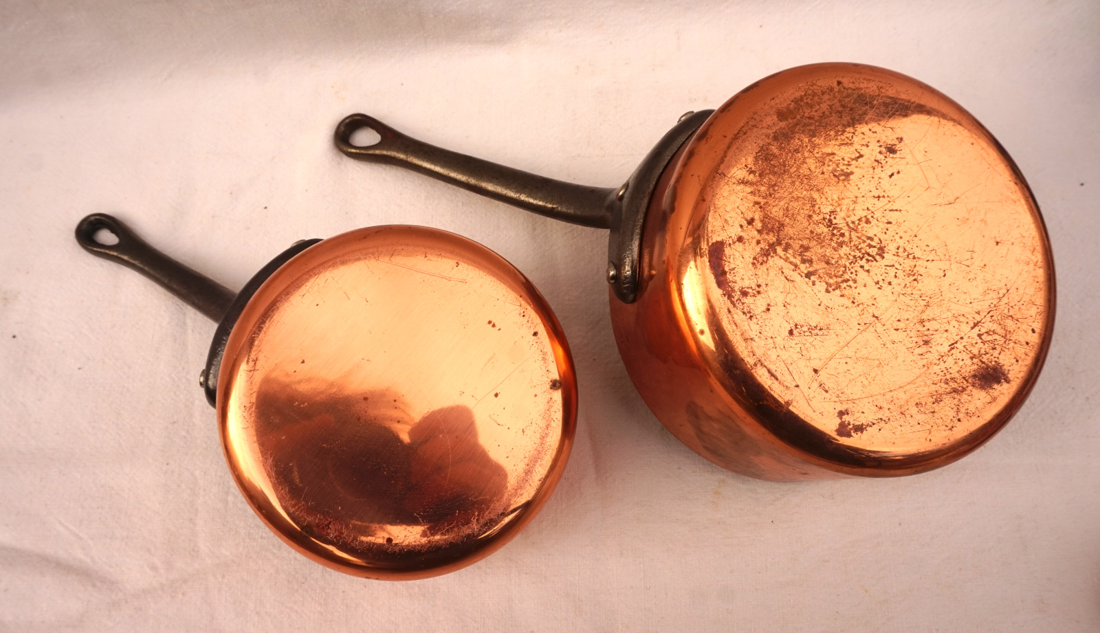 Cookware Hammered Tined Copper Pair of Sauce Pan Iron Handle