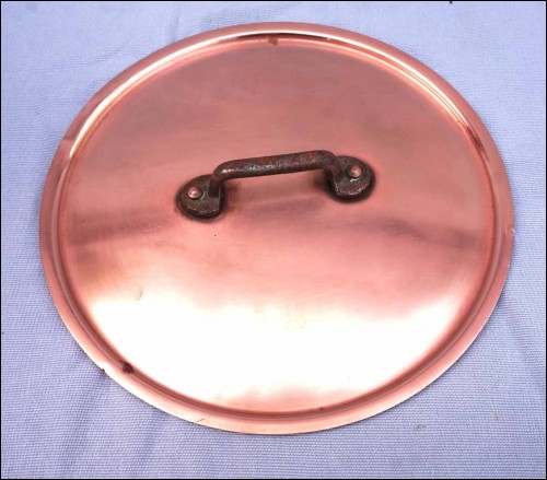French cookware tin lined copper lid for stew pot , casserole made in Normandy during the mid-century. 9" (22.8cm) diameter. Good condition, 2/3 small bumps on the edge as shown by the following pictures.