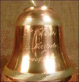 Clochette en cuivre pour la célébration de Sainte Thérèse de Keryado 1907-1957. Elle est signée Villedieu de Villedieu-les-Poêles en Normandie. Elle est en bon état. Hauteur 9cm, diamètre 6.5cm.