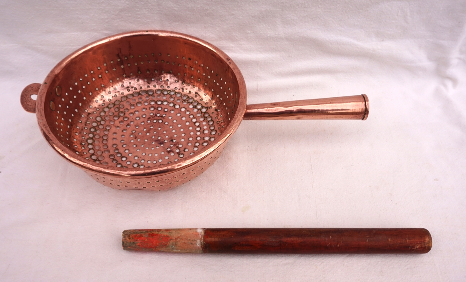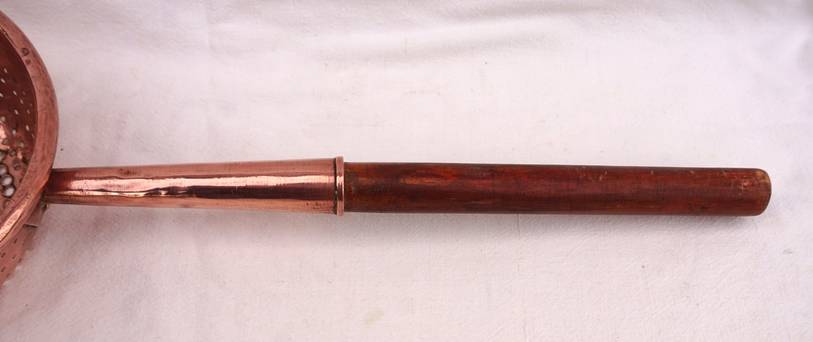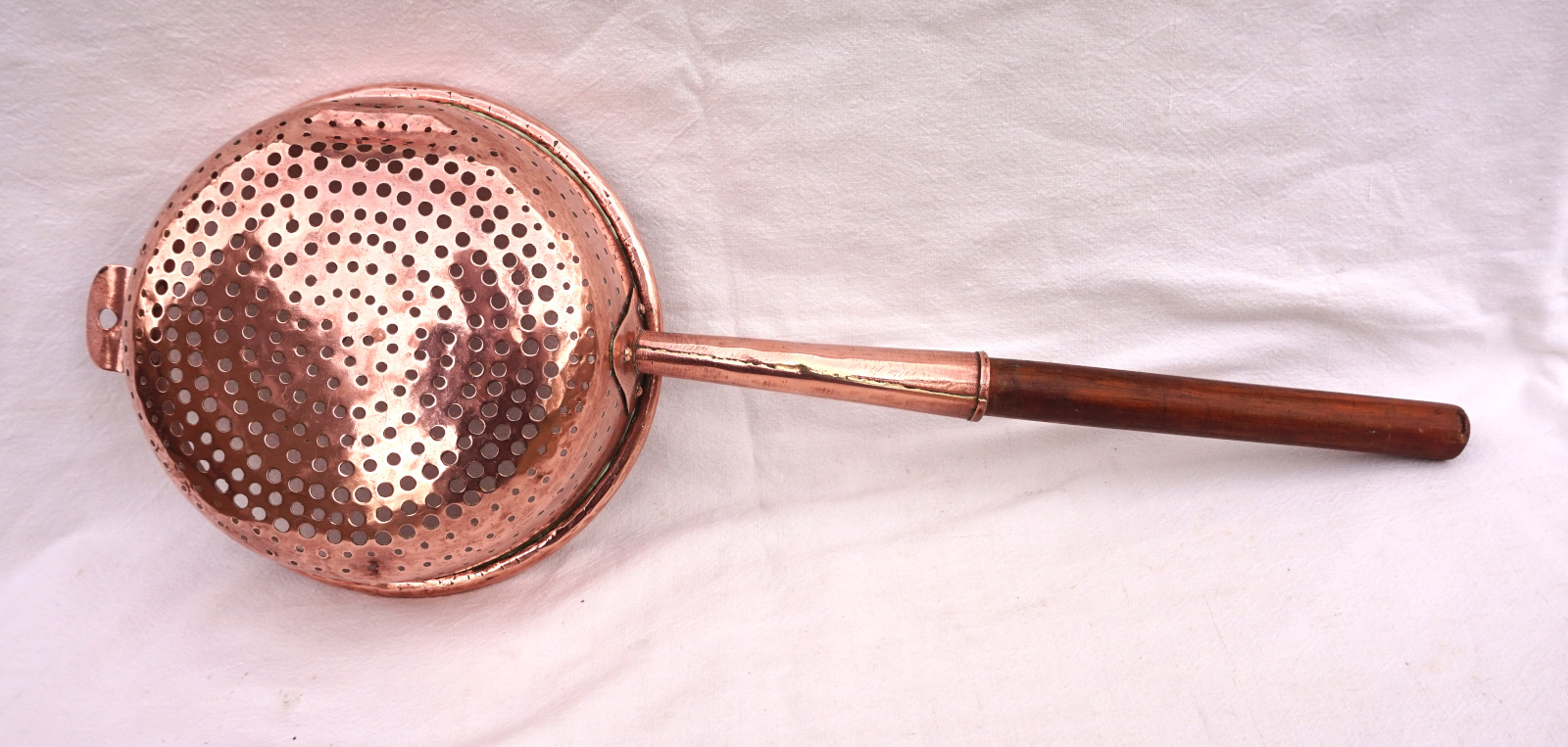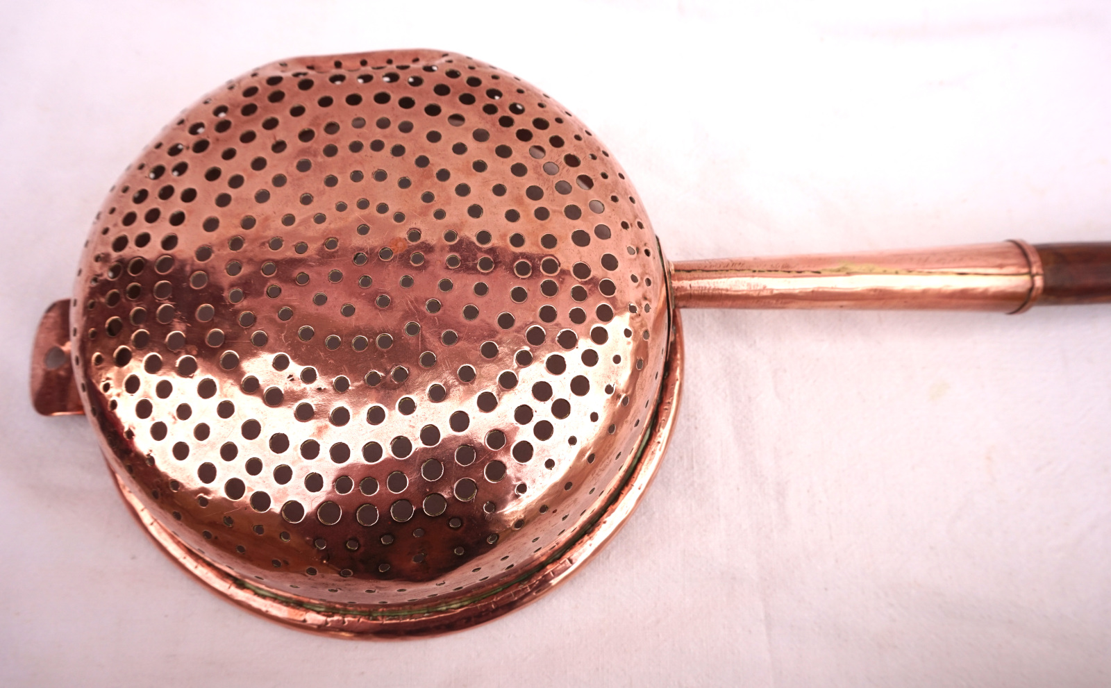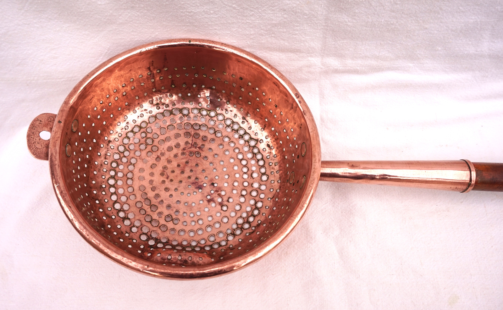 Copper Large Colander Strainer Ø 9" Wood Handle Late 19th C