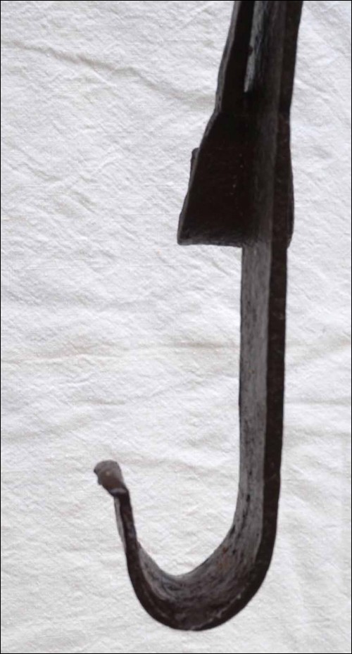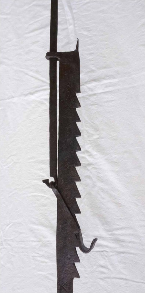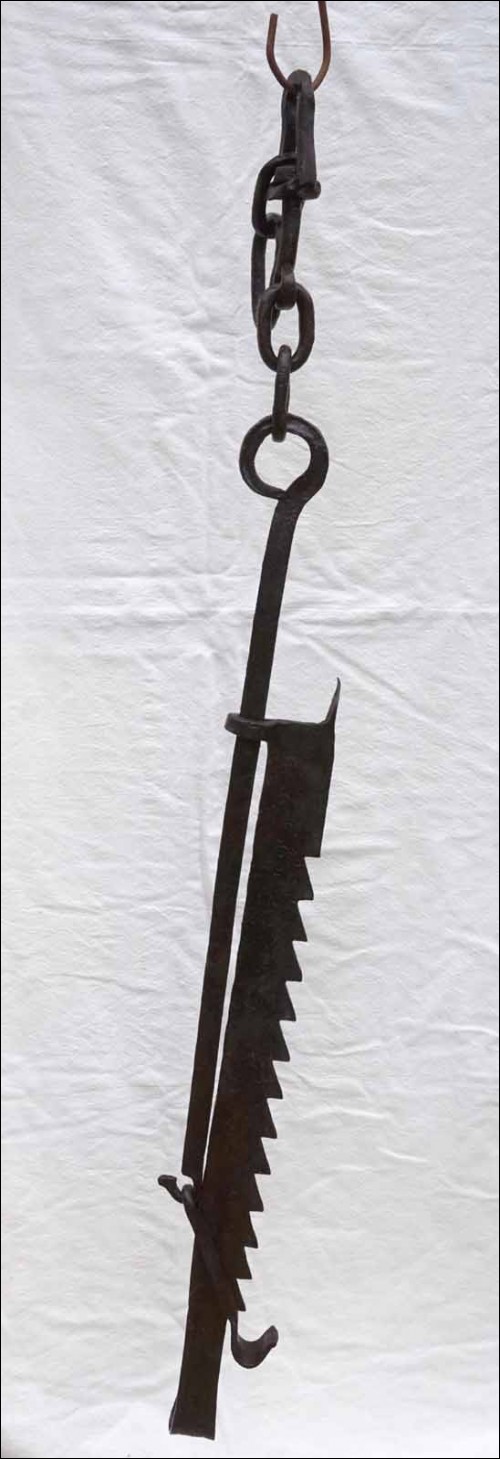 Early 18th C Large Wrought Iron Sawtooth Trammel Fireplace 57 to 75 Brittany