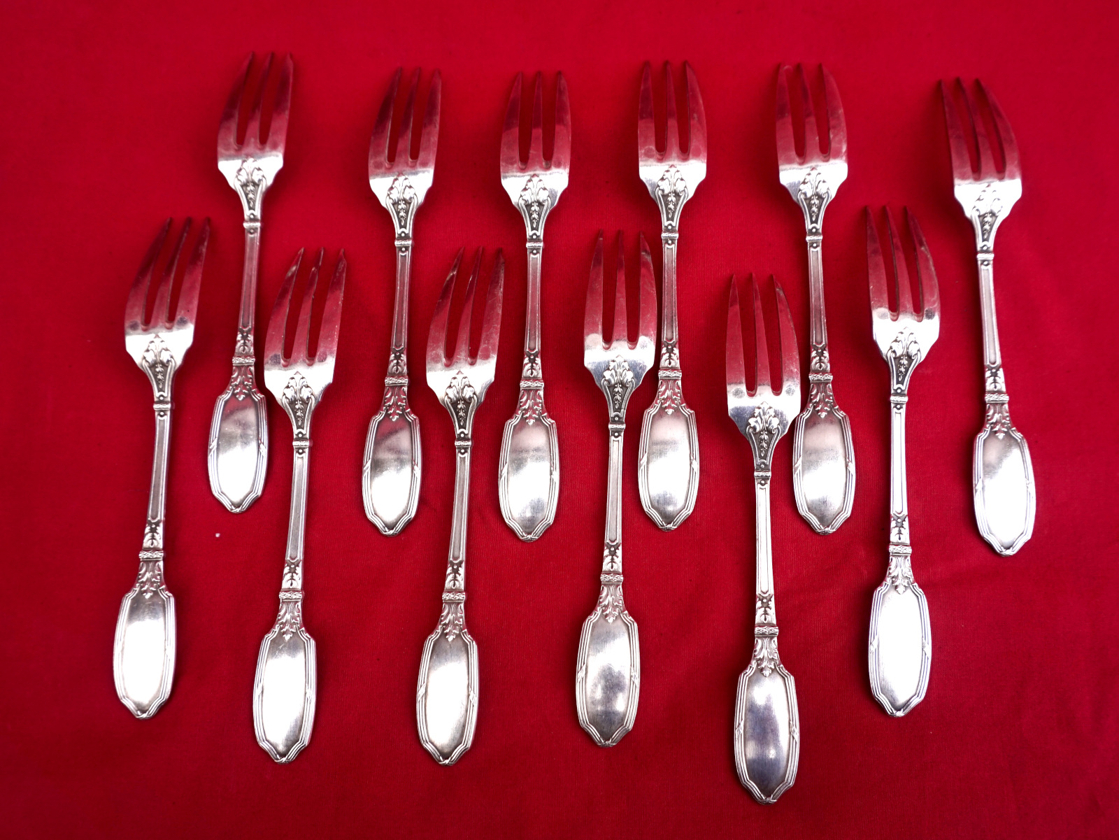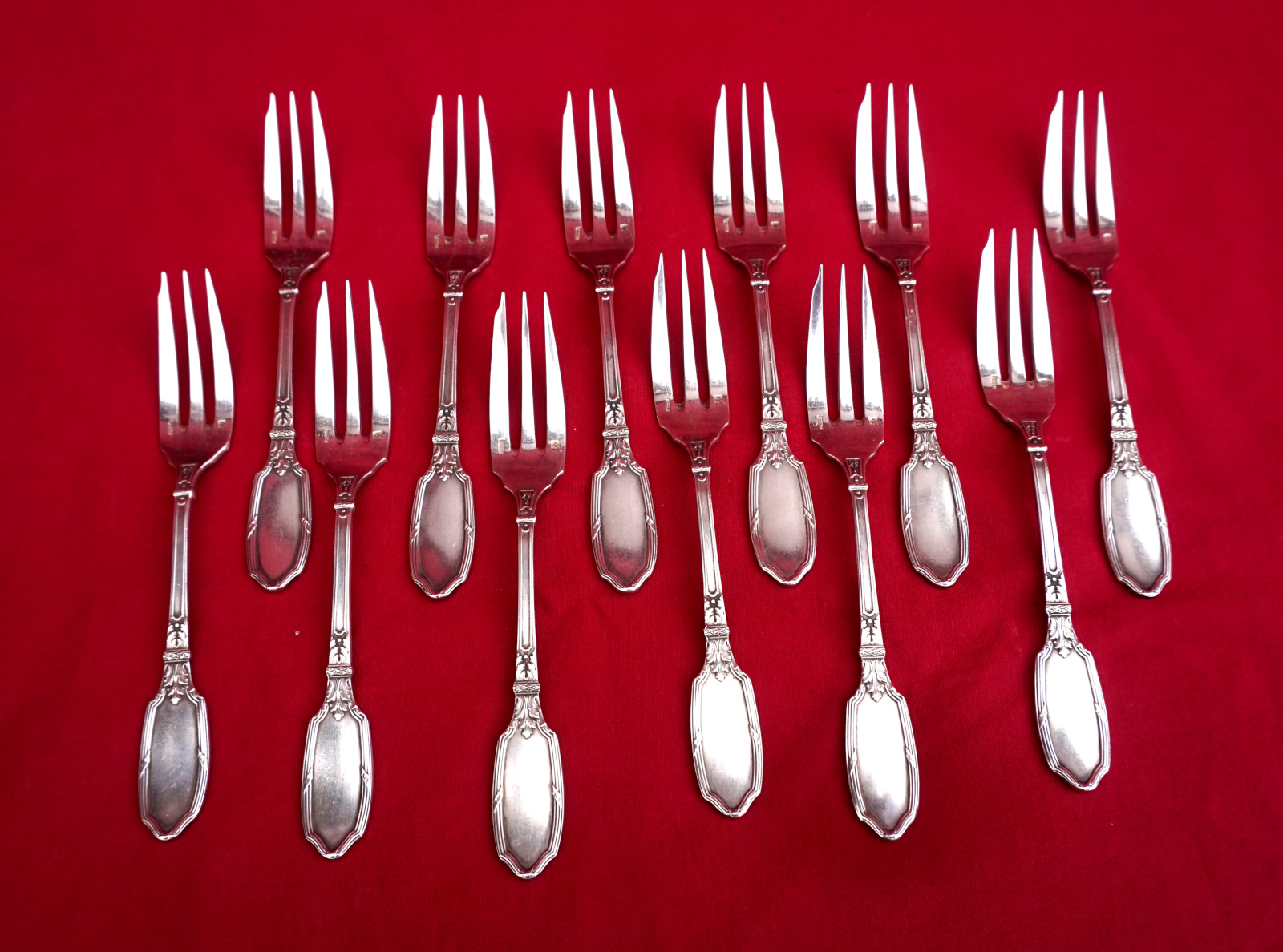 Empire Style Ravinet Denfert Silverplate Dessert Forks Spoon Set for 6