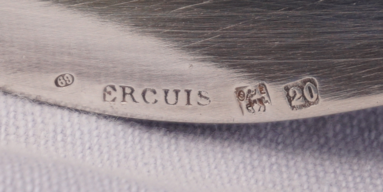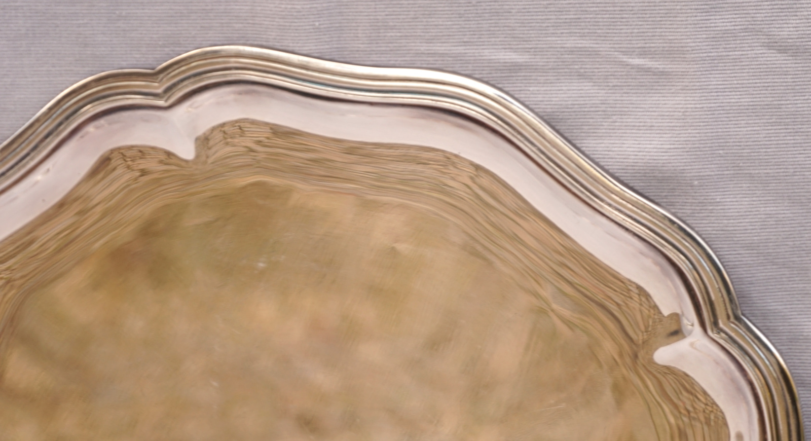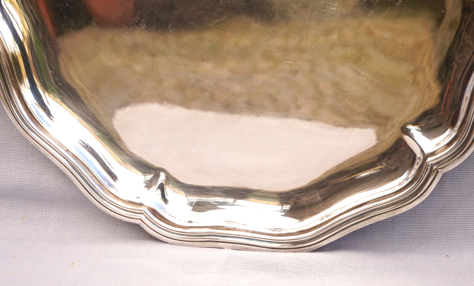 French silverplate scalloped serving tray in Louis XV Style made by Ercuis Paris. It's hallmarked on the back. 13 3/4" (34.8cm) diameter, weight 2lbs 9oz (1.187 kilograms). Beautiful condition a few small used as shown by the following pictures.