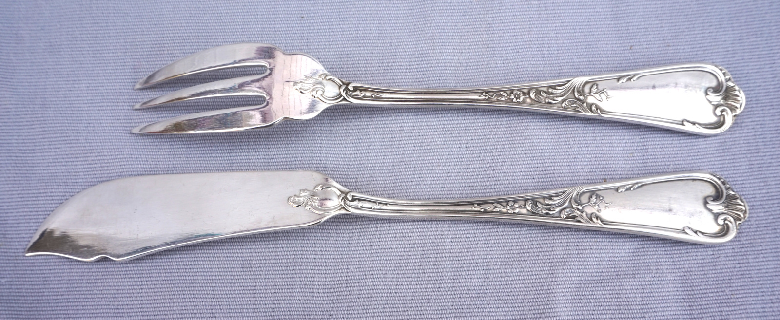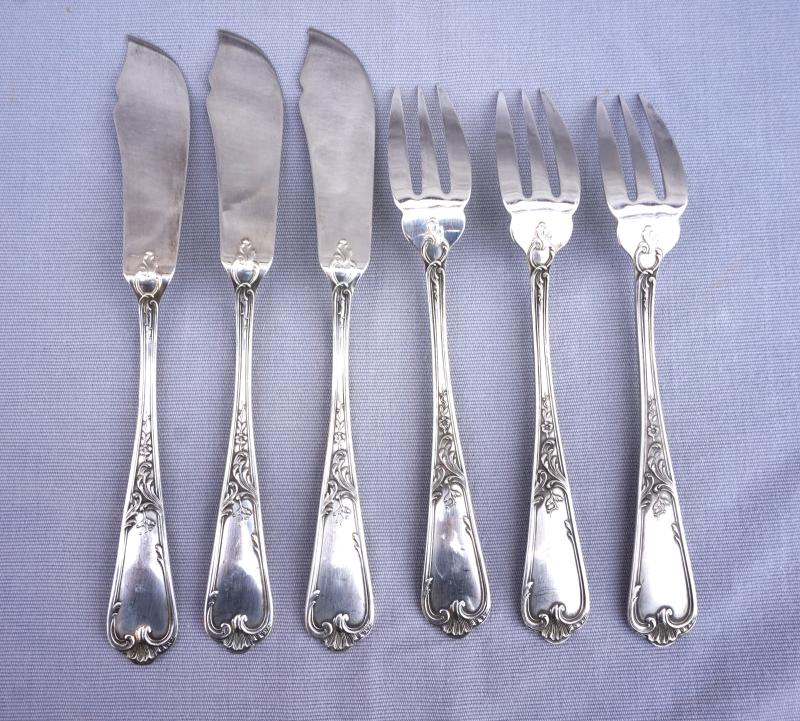 ERCUIS Silverplate Louis XV Style Fish Flatware Forks Knives Set for 3