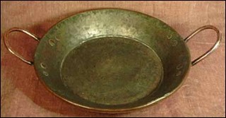For our French-speaking friends Plat de cuisson à anse en cuivre étamé, vers 1850. Diamètre 37 cm sans les anses, hauteur 5,5 cm.