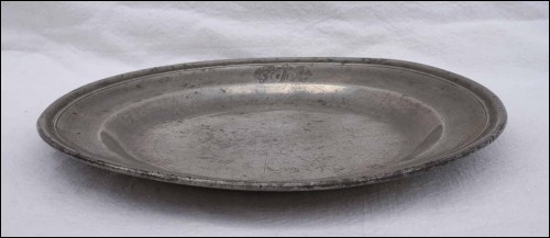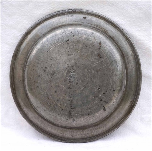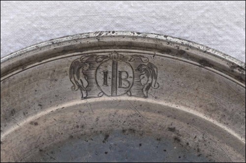 French Country Pewter Plate Engraved Monogram IB 18th C Hallmarked