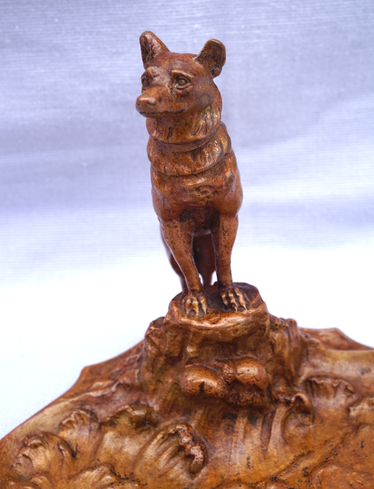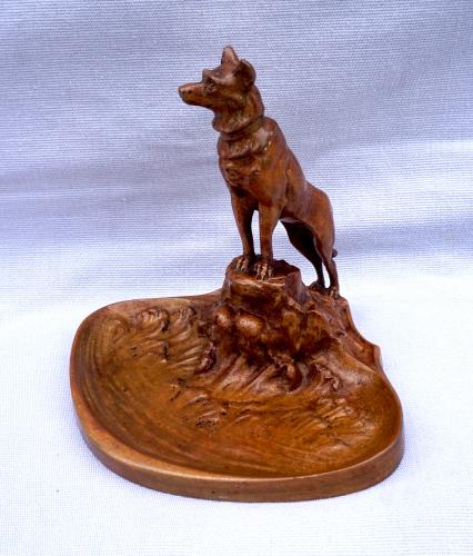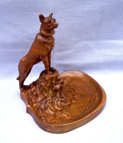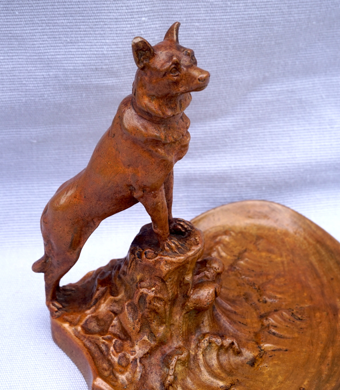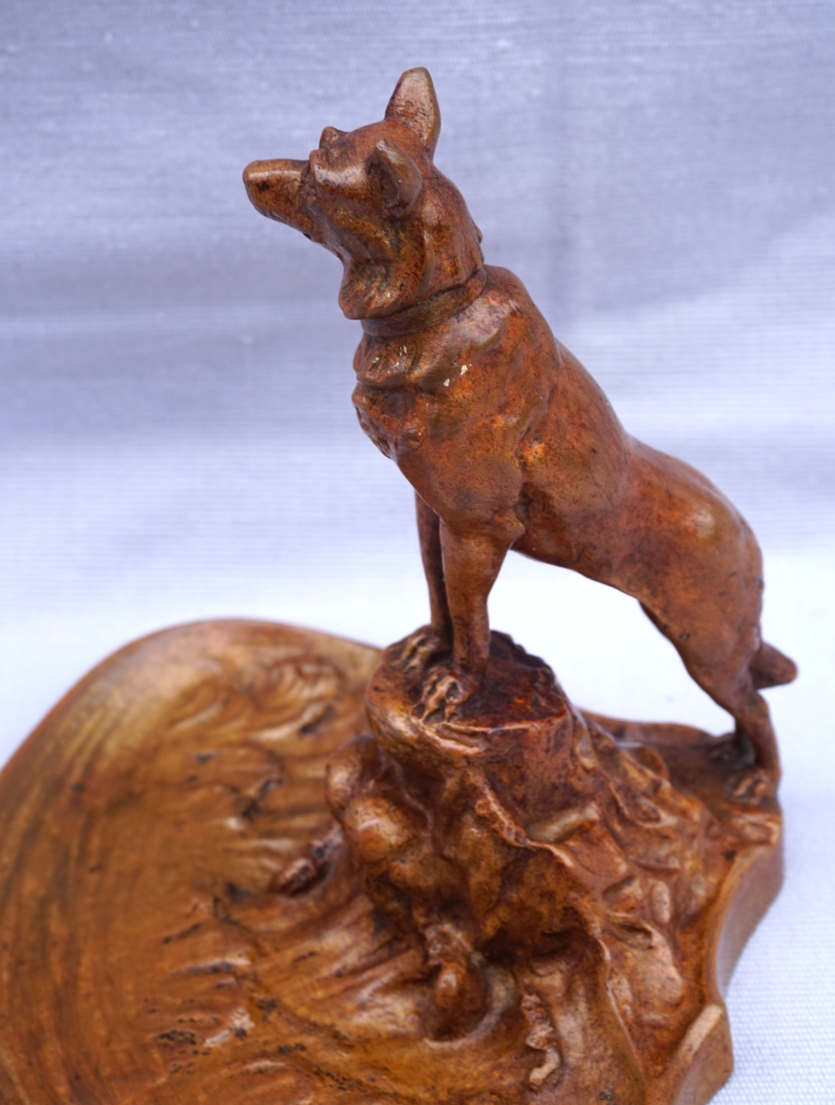 German Shepherd Bronze Desk Tidy Dog Figure 1900's