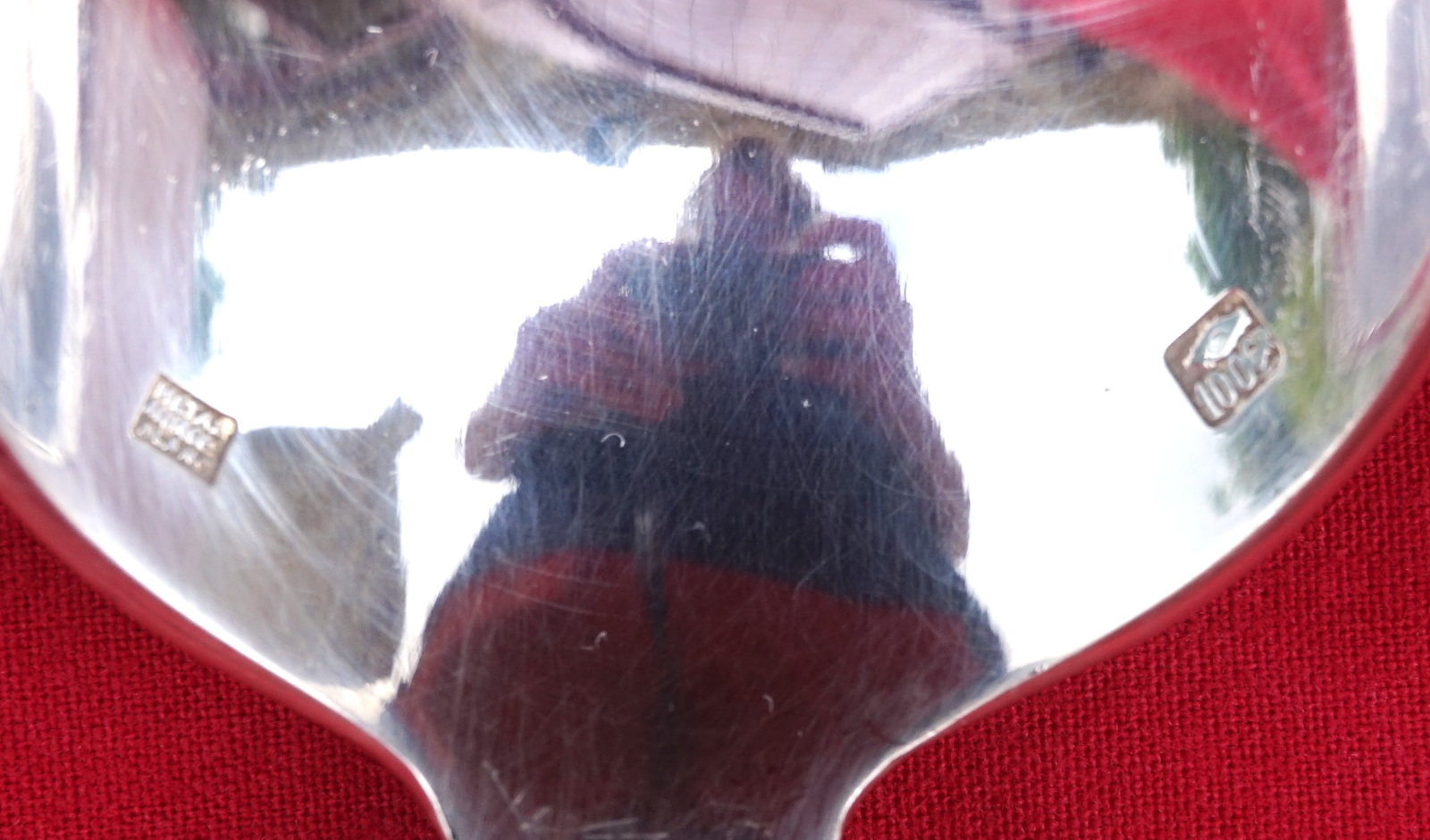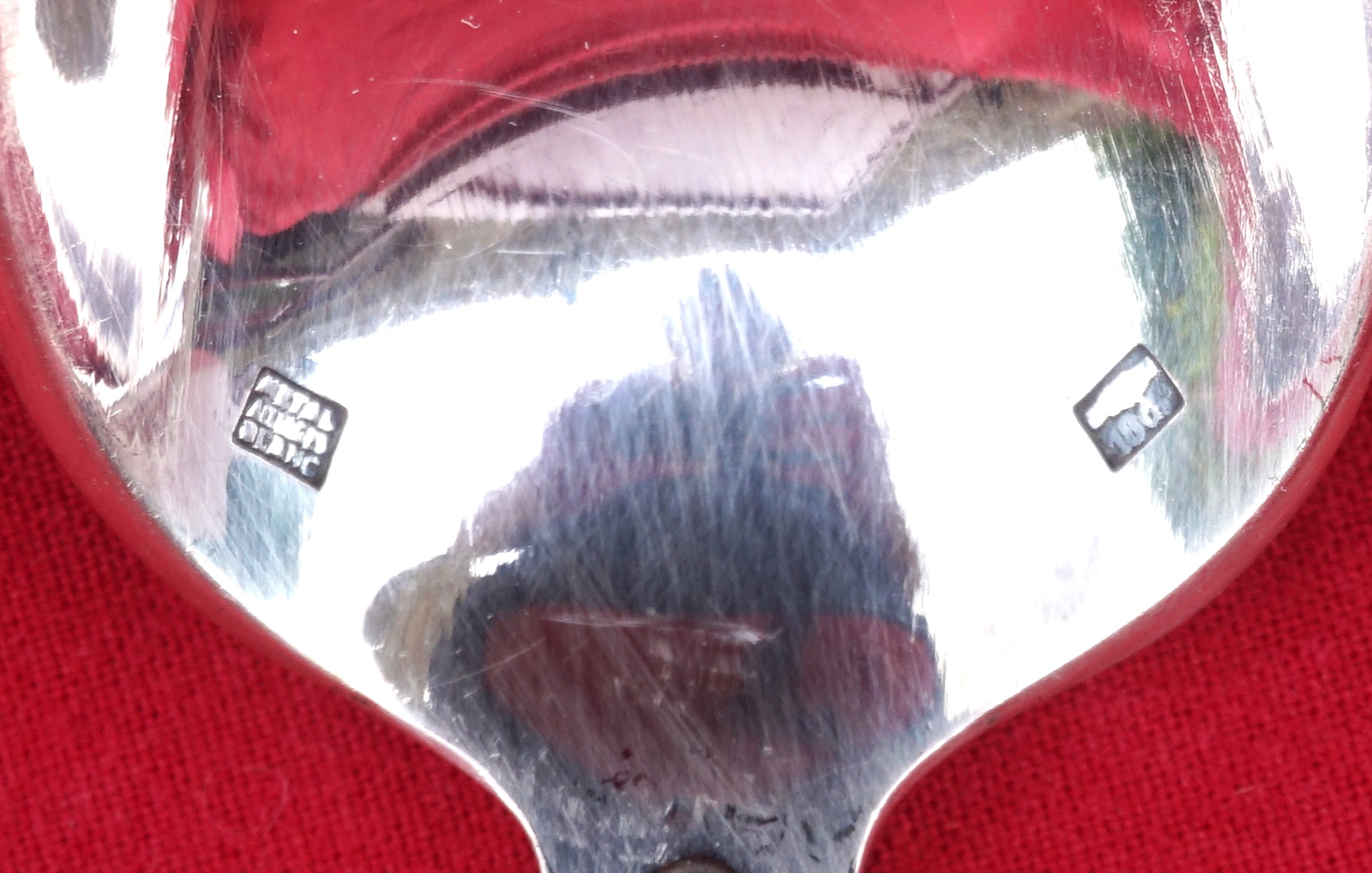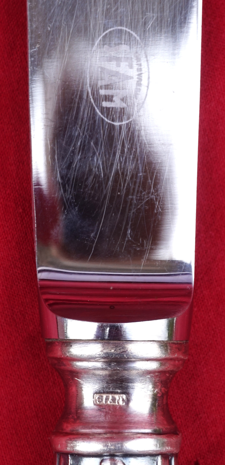 Ménagère de table de style Louis XV en métal argenté par SFAm, orfèvrerie de Chambly, comprenant 12 couteaux de table lame inox, 12 fourchettes et cuillères et 12 cuillères à dessert. Toutes les pièces sont poinçonnées et grammées. Longueur des couteaux 26cm, fourchettes et cuillères table 21.5cm, cuillères dessert 14.5cm. Très bel état.