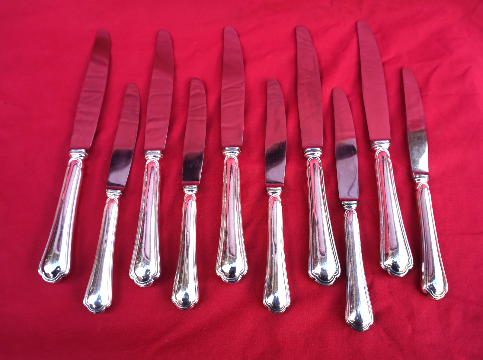 Louis XV style Set 5 Dinner & 5 Salad Knives Stainless Steel Blade Silver Plated