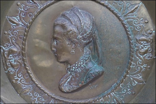 Marie de Medici Brass Repousse Wall Plaque Ø 24" French Renaissance Late 19th C