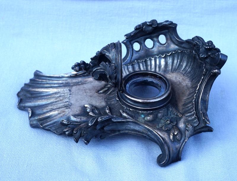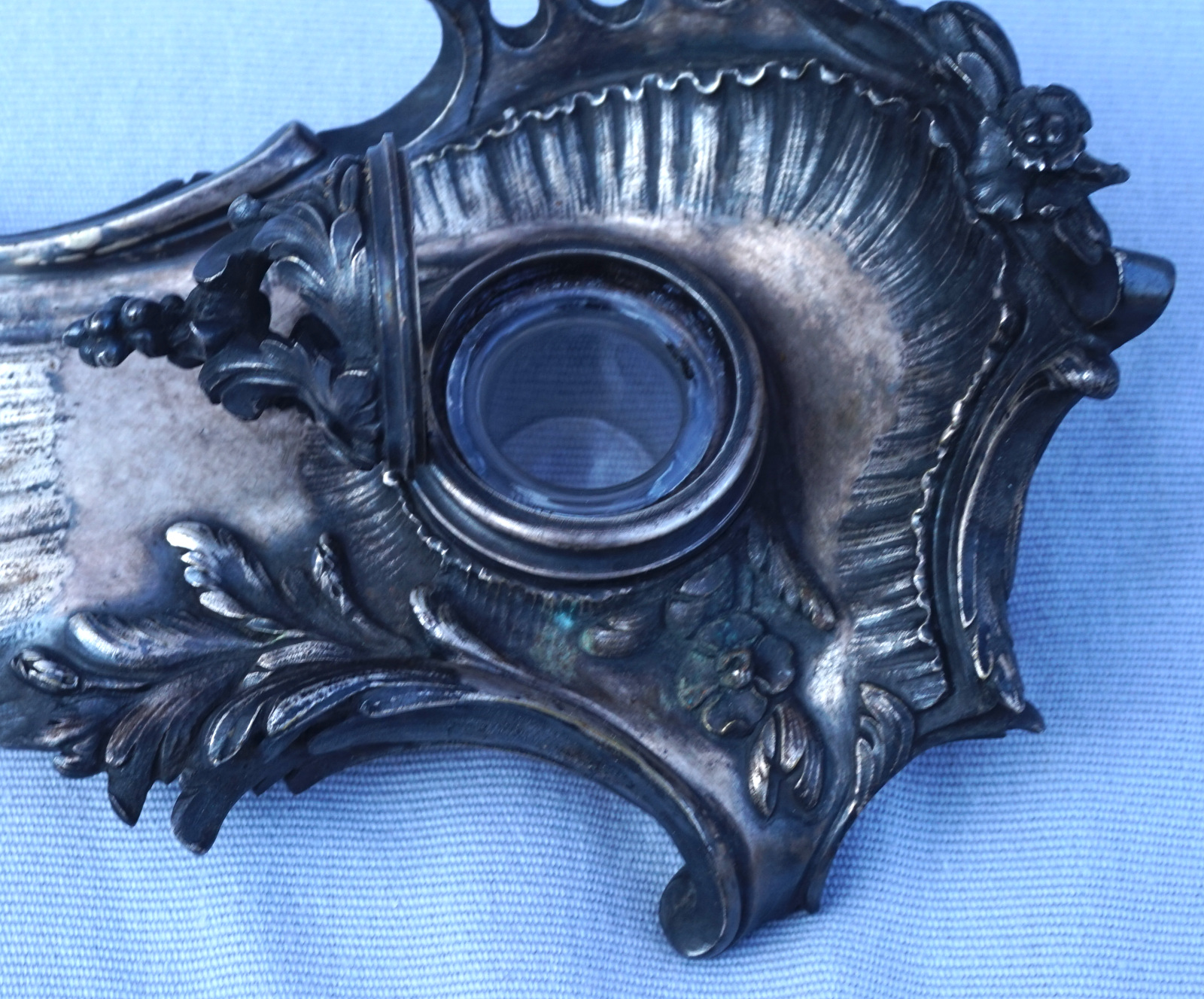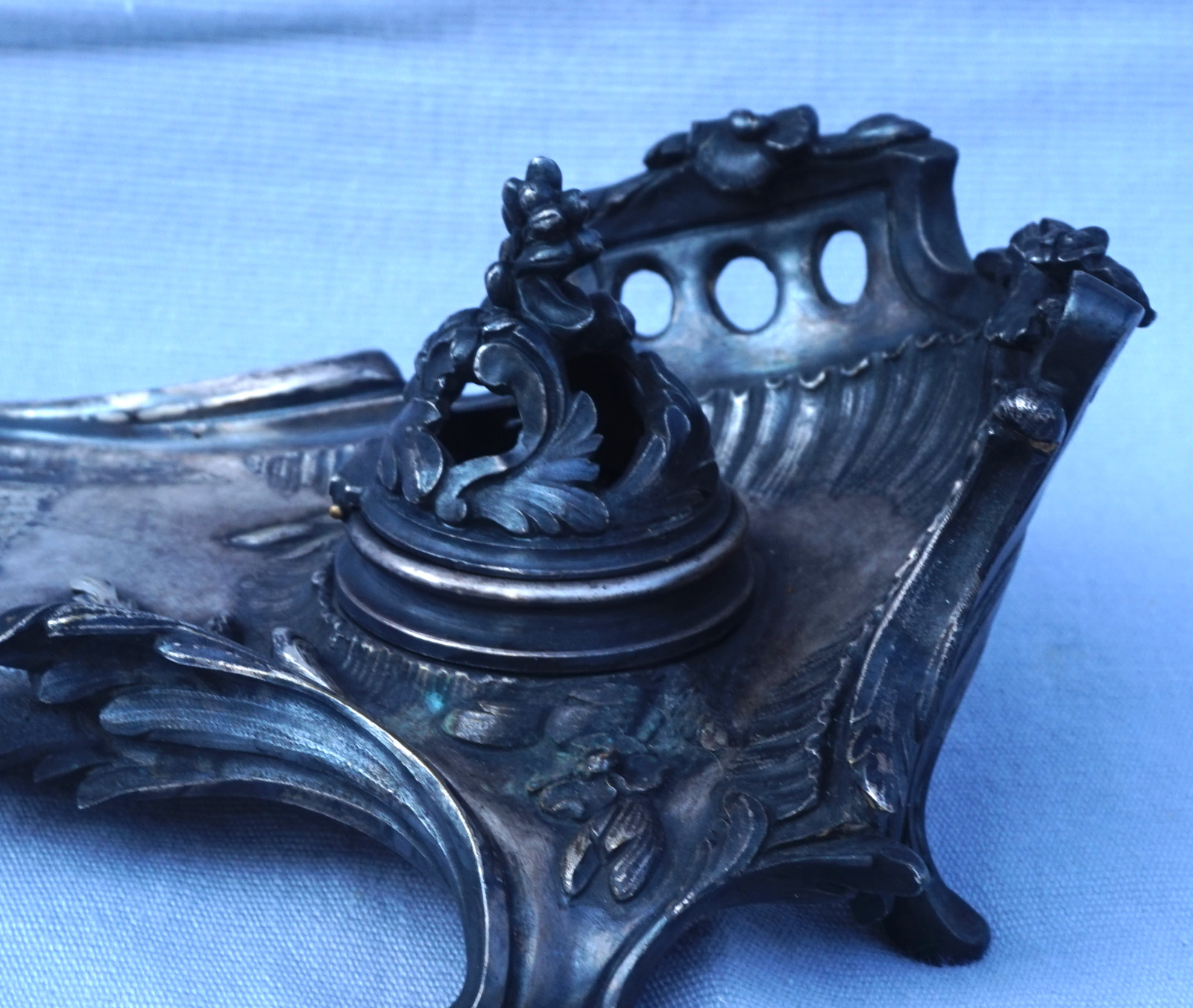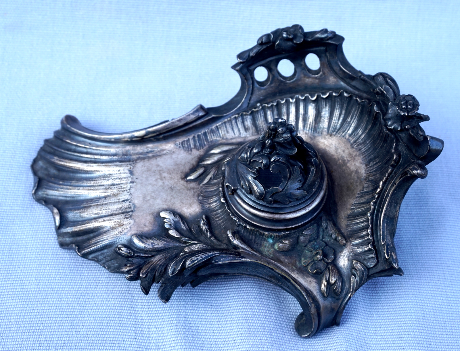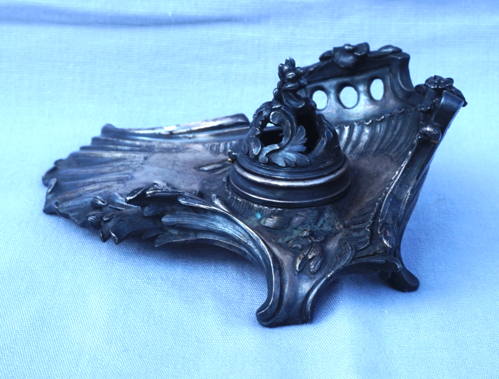 Rococo Louis XV style Nickel Silver Inkwell Late 19th Century